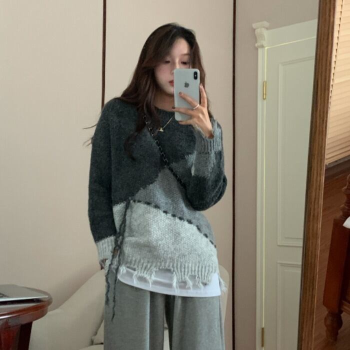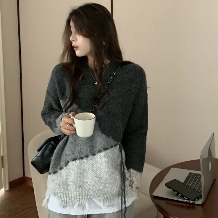 セーター レディーススタイルスタンダードカラートップス ロング レトロ オータム 秋物 ウィンター 冬物 1号婦人36923832492