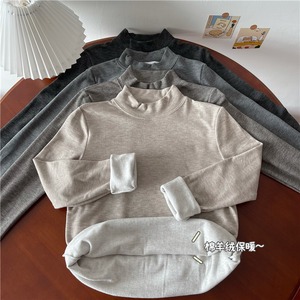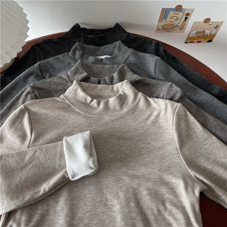Tシャツ シャツ オータムウィンタースタイルベルベットカラースリムトップス ロング 秋物 冬物 1号婦人9184440679