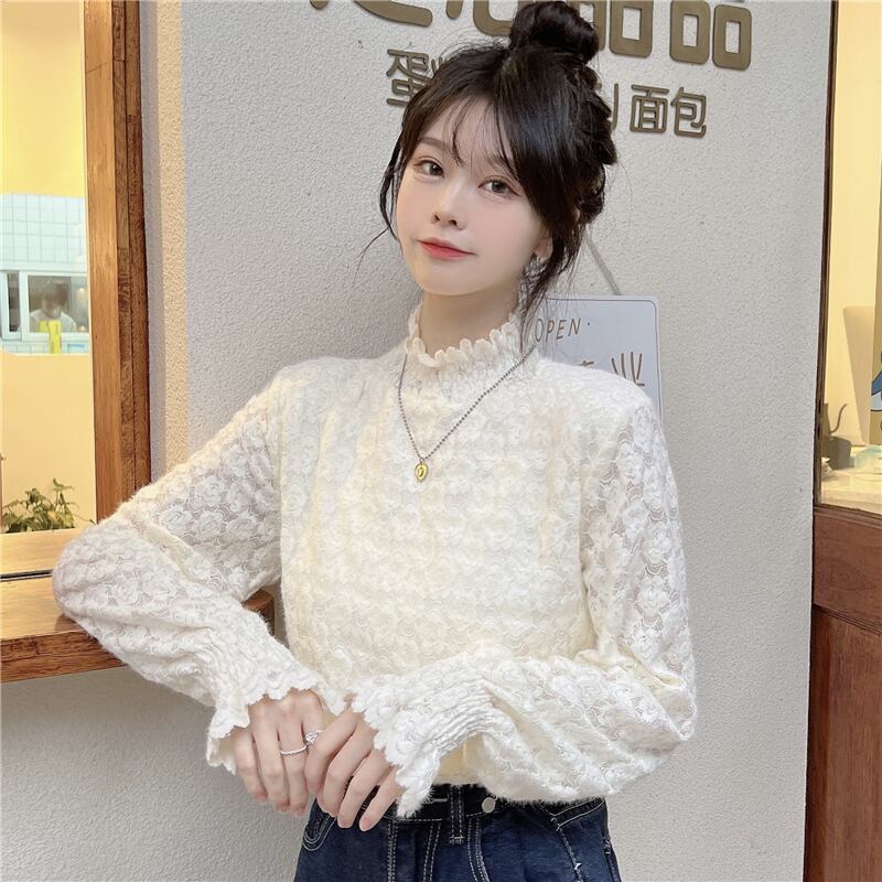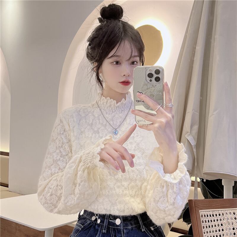 ベルベットレースシャツ レディースオータムウィンタースタイルカラートップス 秋物 冬物 1号婦人30711907786