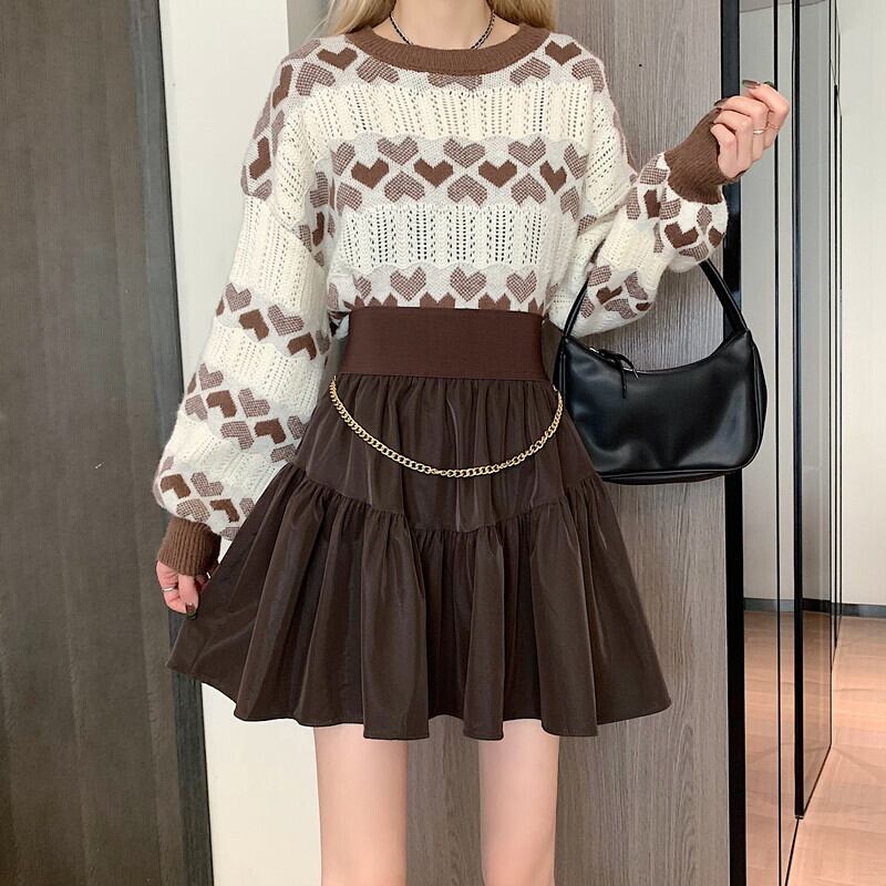Aラインスカート ウィンターセーター ウェストプリーツショート 冬物 1号婦人17634657064