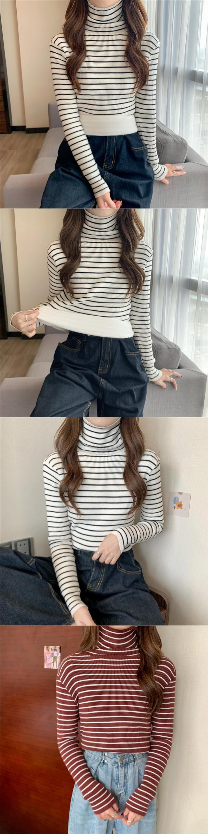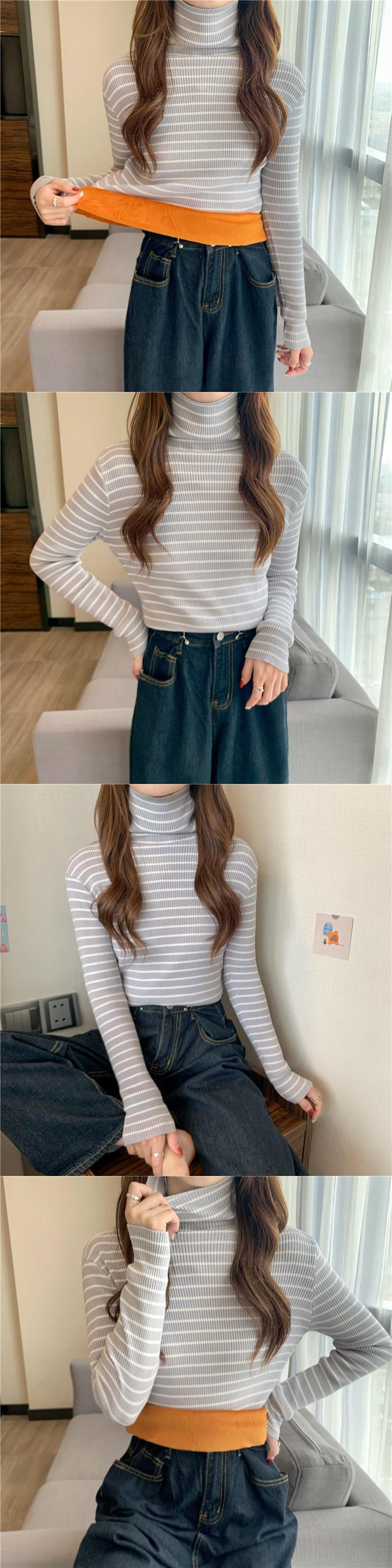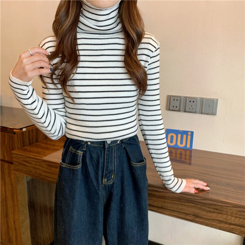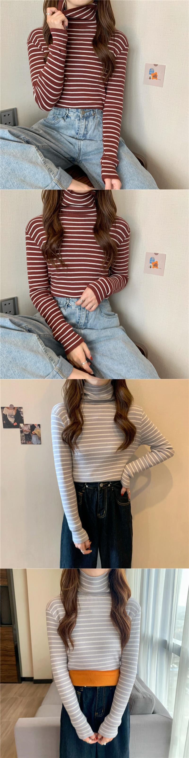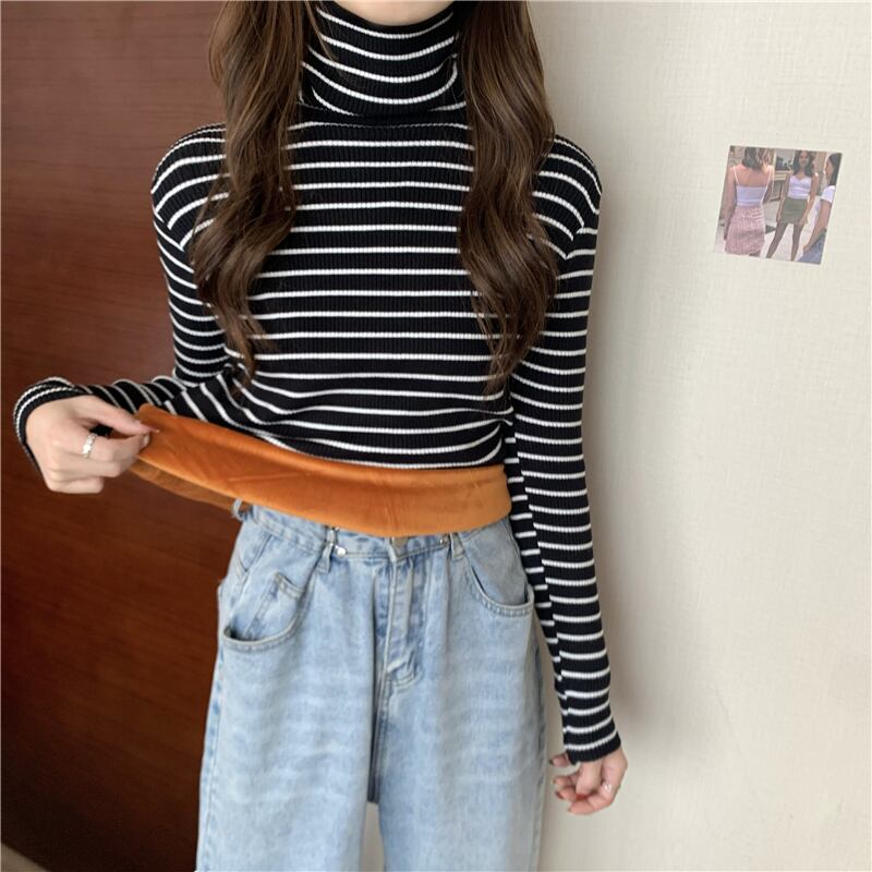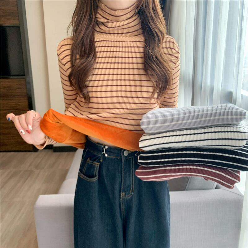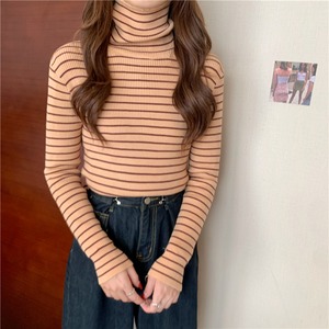 ニットセーター トップス オータムウィンタースタイルベルベットストライプシャツ ロング 秋物 冬物 1号婦人23857371456