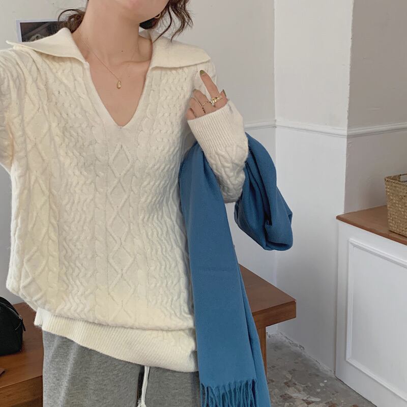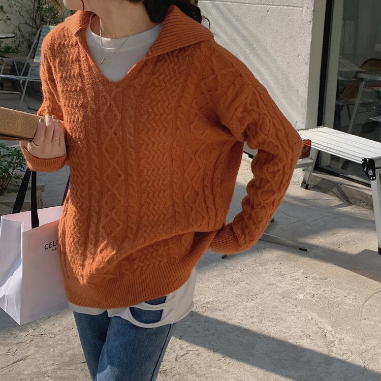 セーター ルーズオータムウィンタースタンダードスタイル ロング レトロ 秋物 冬物 1号婦人33026875408