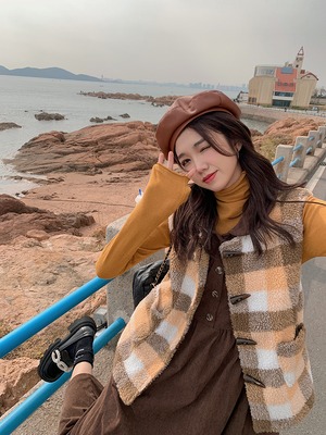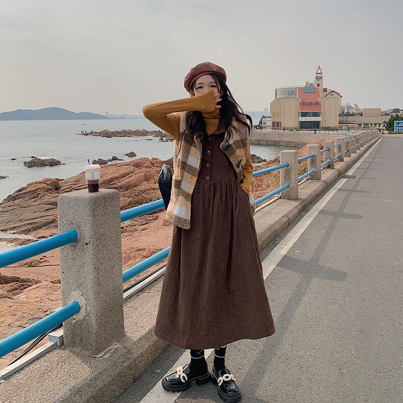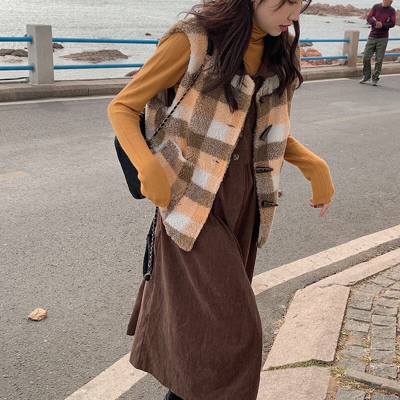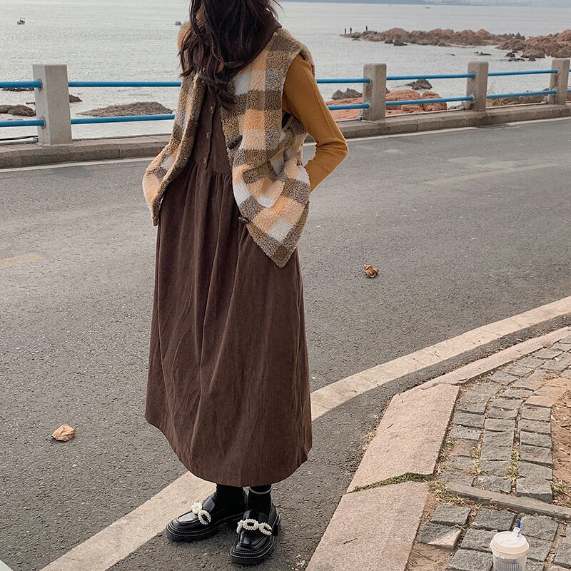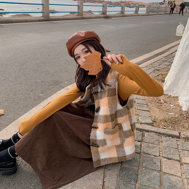 色:コーヒー色のベスト,アプリコットベスト,黄色のボトミングシャツ,グリーンボトミングシャツ,コーヒー色のタンクスカート,黒のタンクスカート