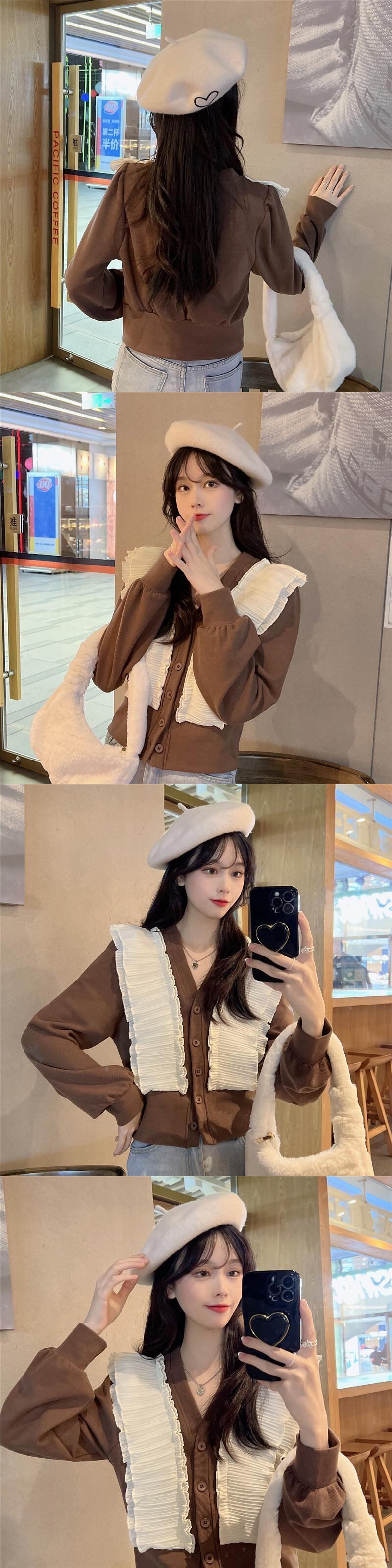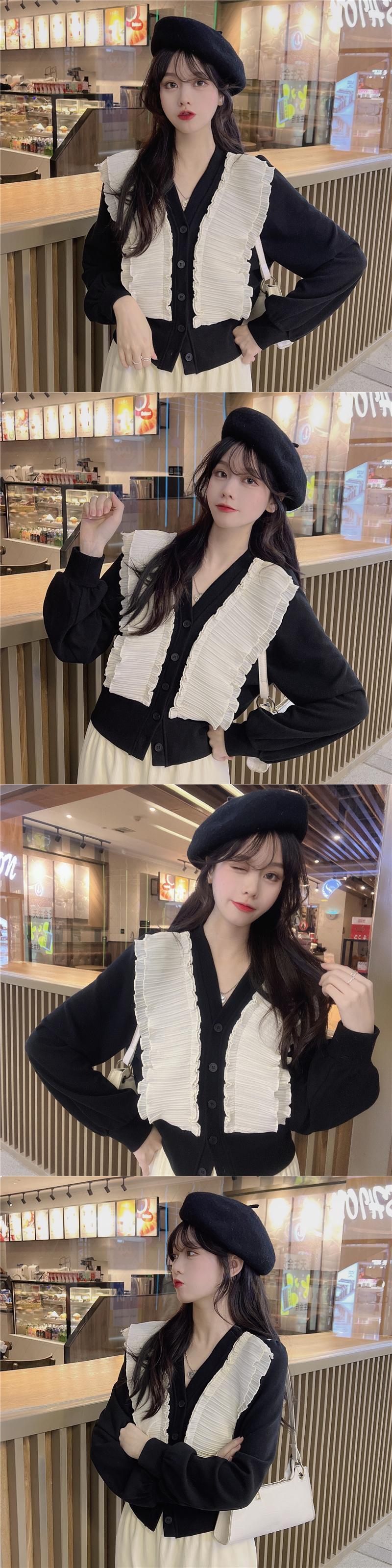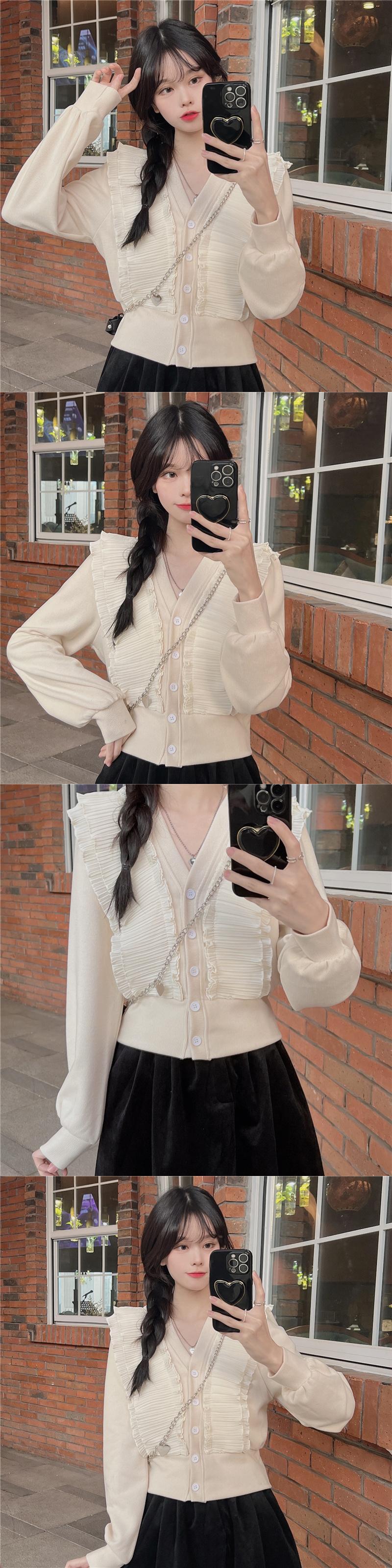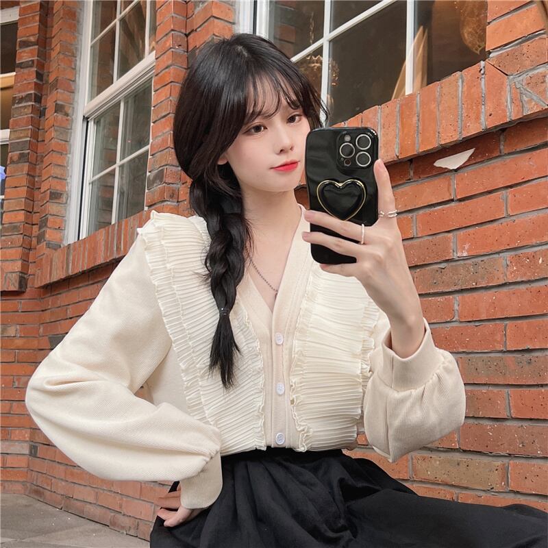 シャツ オータムウィンタートップス スタイルショートカーディガンルーズ ロング 秋物 冬物 Vネック ステッチ 1号婦人58507473118