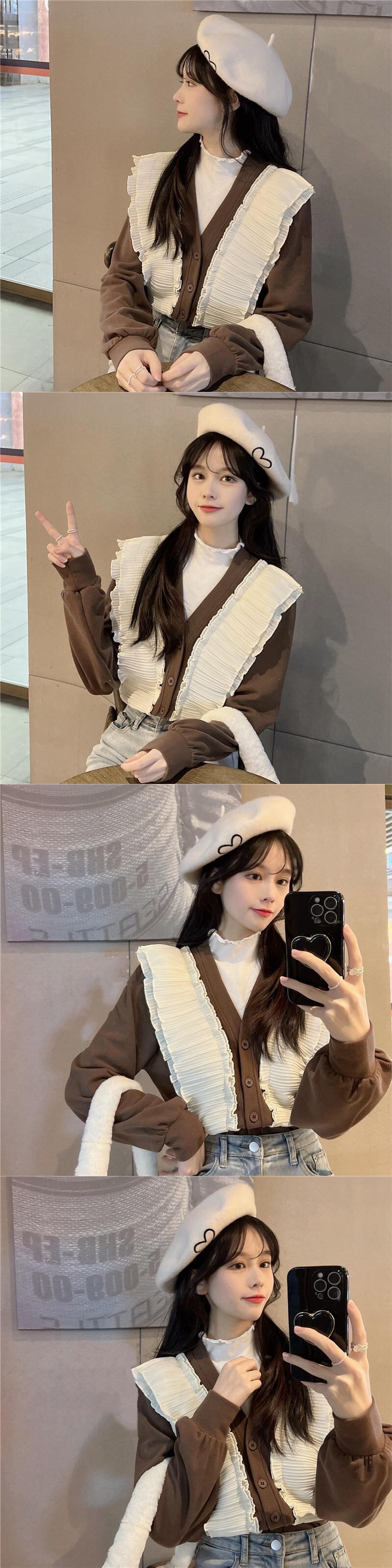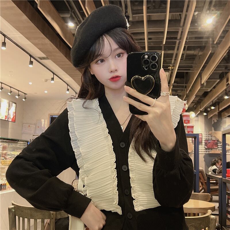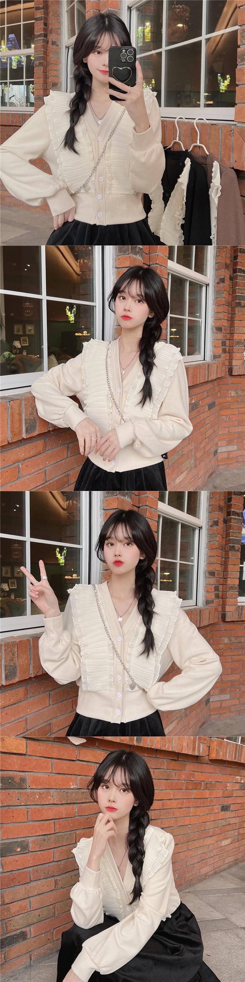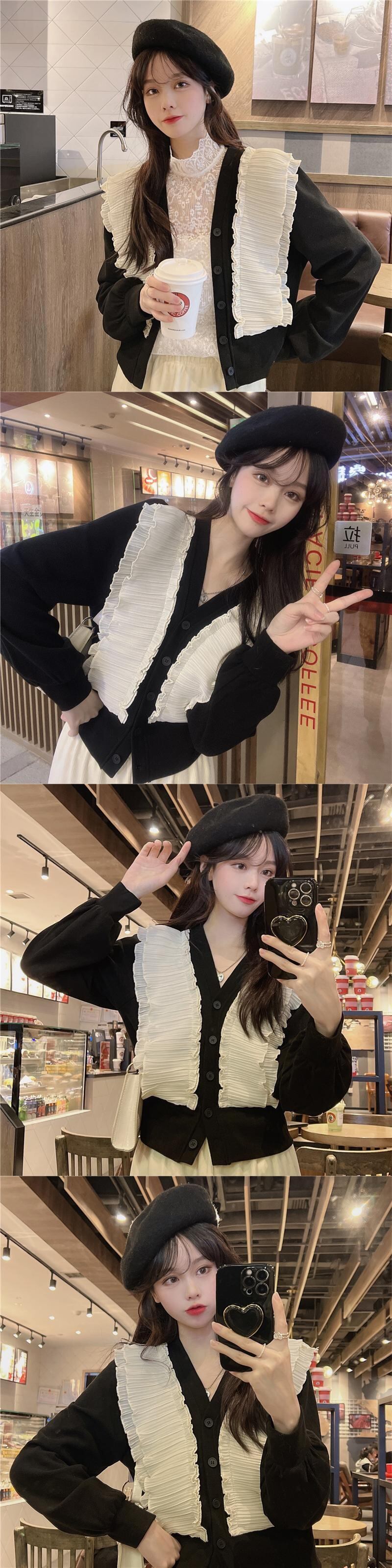 シャツ オータムウィンタートップス スタイルショートカーディガンルーズ ロング 秋物 冬物 Vネック ステッチ 1号婦人58507473118