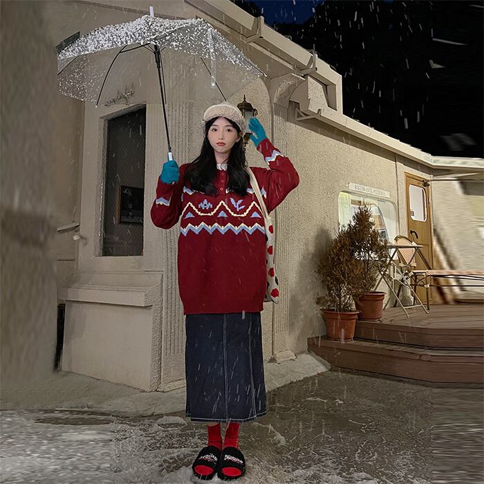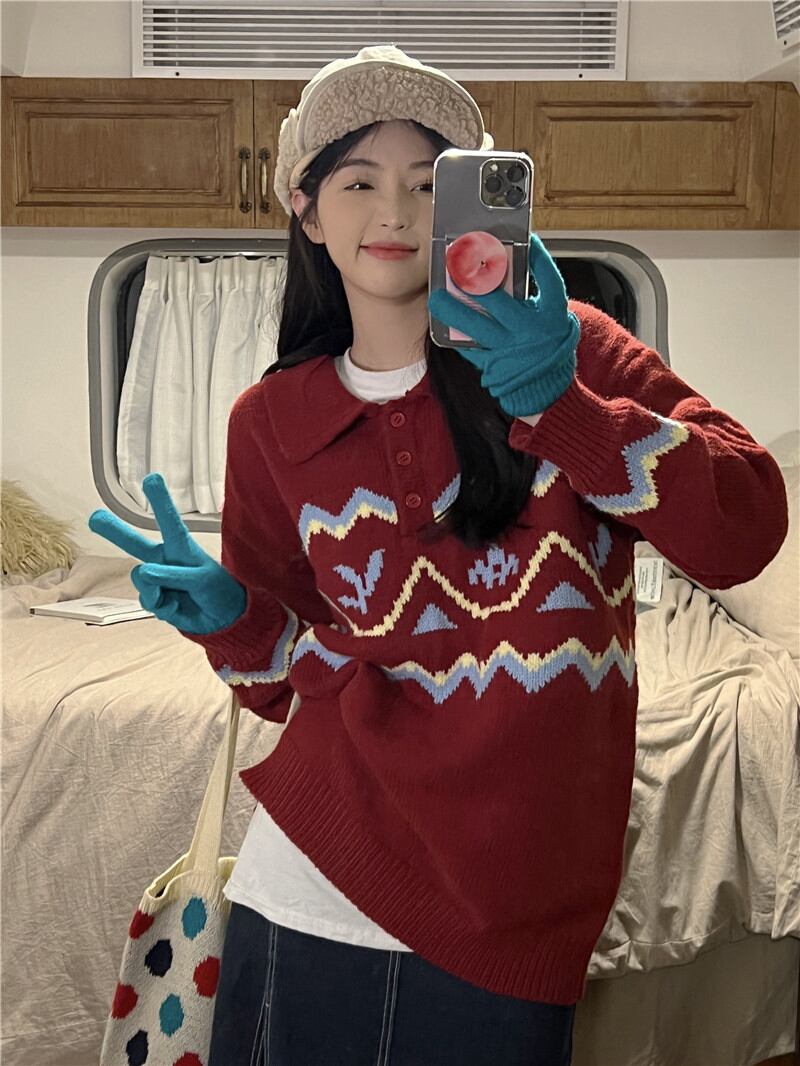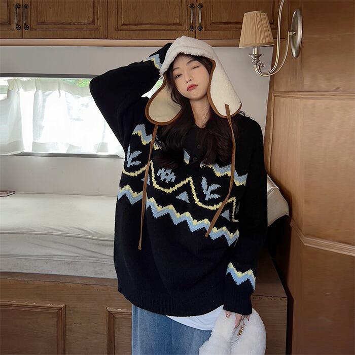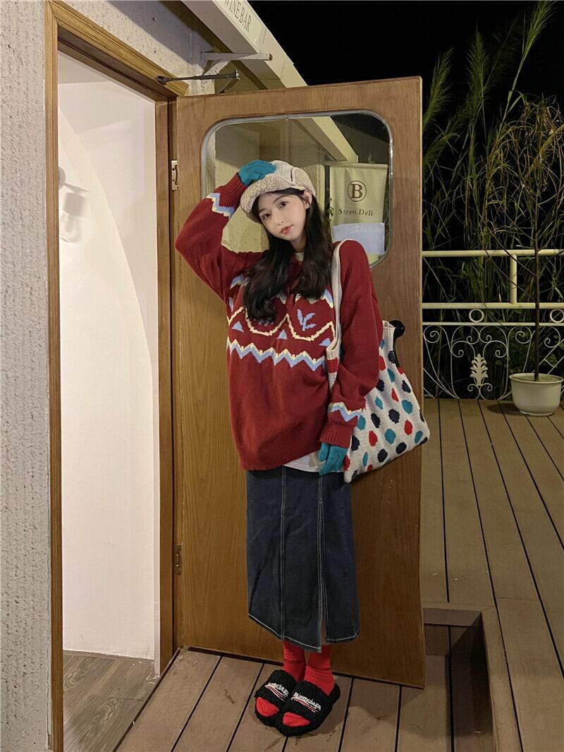 セーター オータムウィンタースタイルルーズトップス 秋物 冬物 1号婦人28013390896