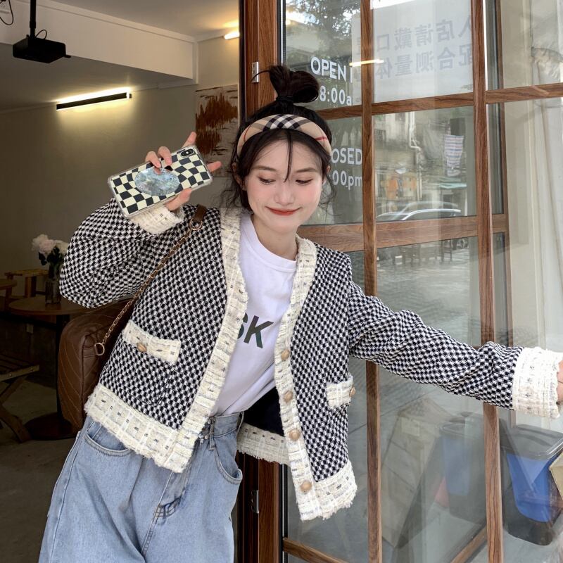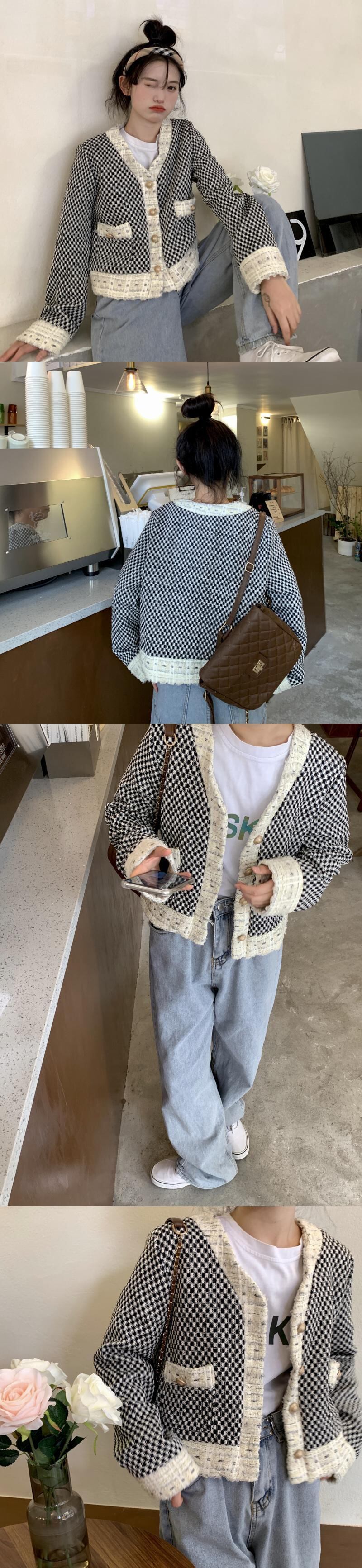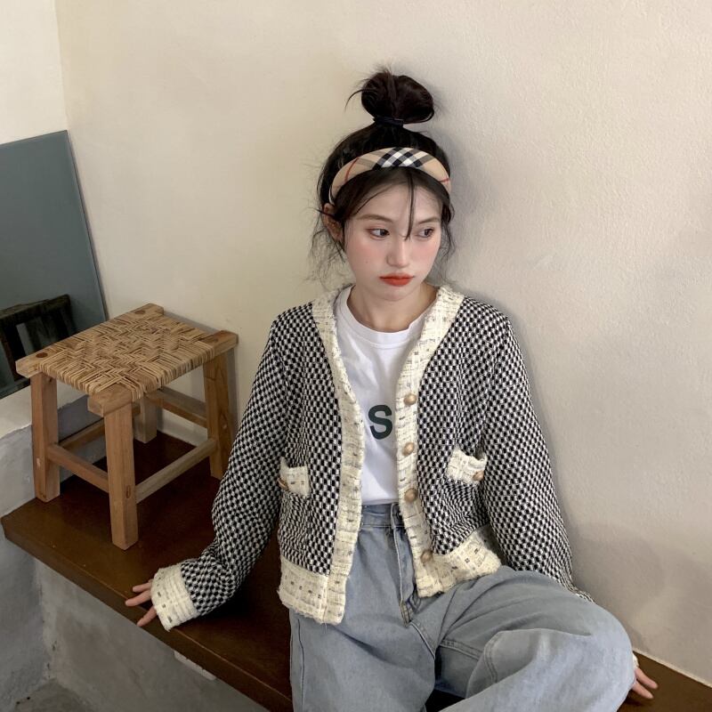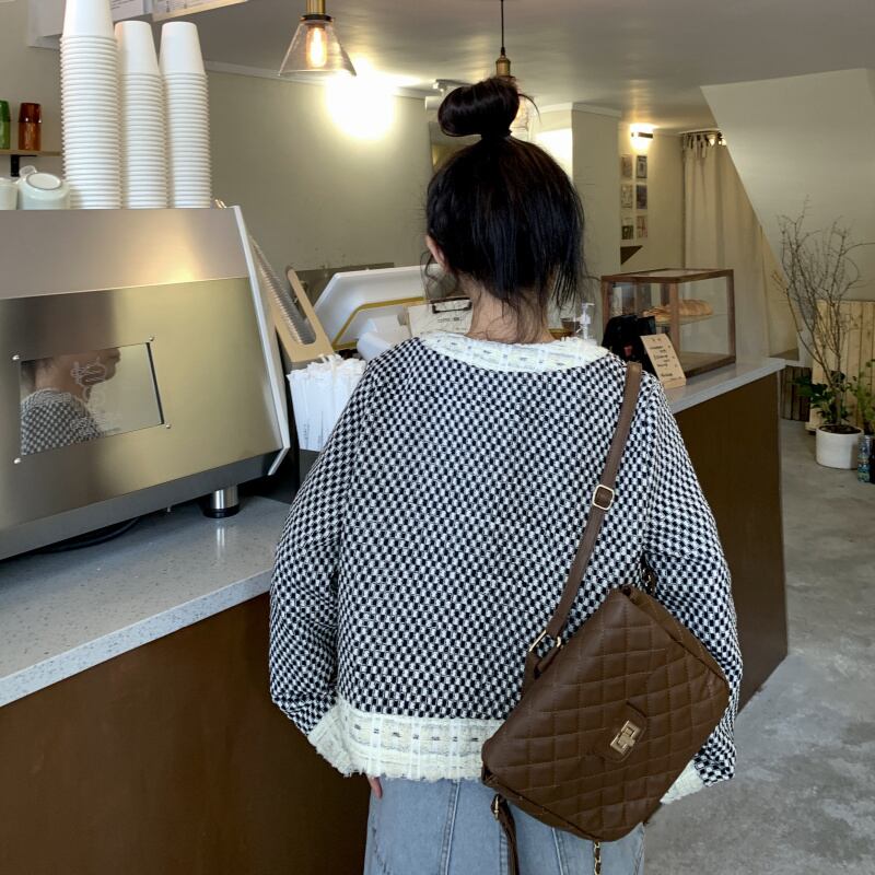 ジャケット オータムウィンターショートツィードスタンダードカーディガン レトロ 秋物 冬物 1号婦人17925160078
