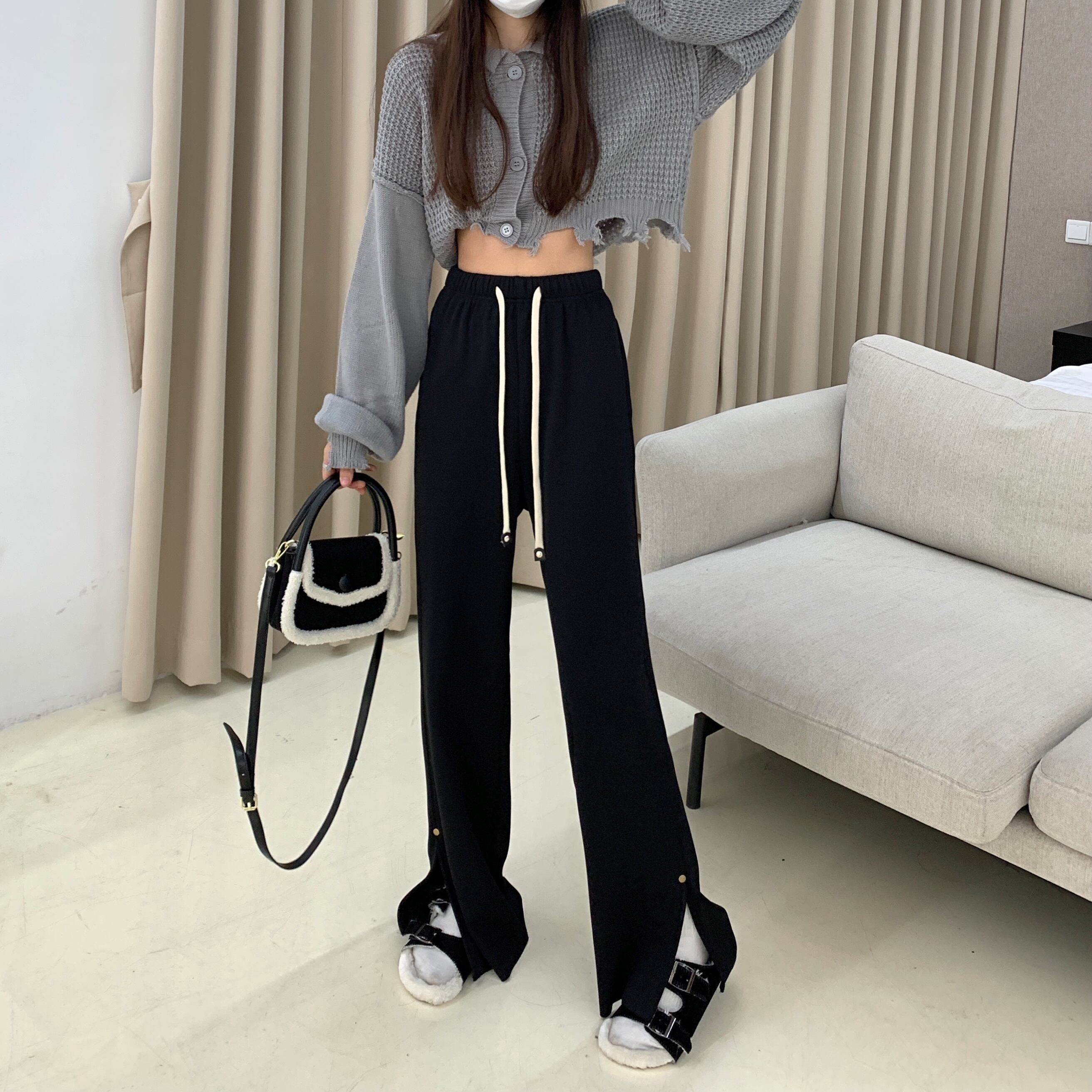 パンツ オータムウィンタースタイルベルベットスリットハイウェストウェストルーズワイドレッグ 秋物 冬物 ワイドパンツ 1号婦人30498845379