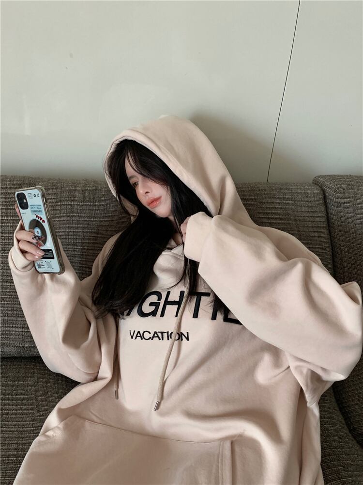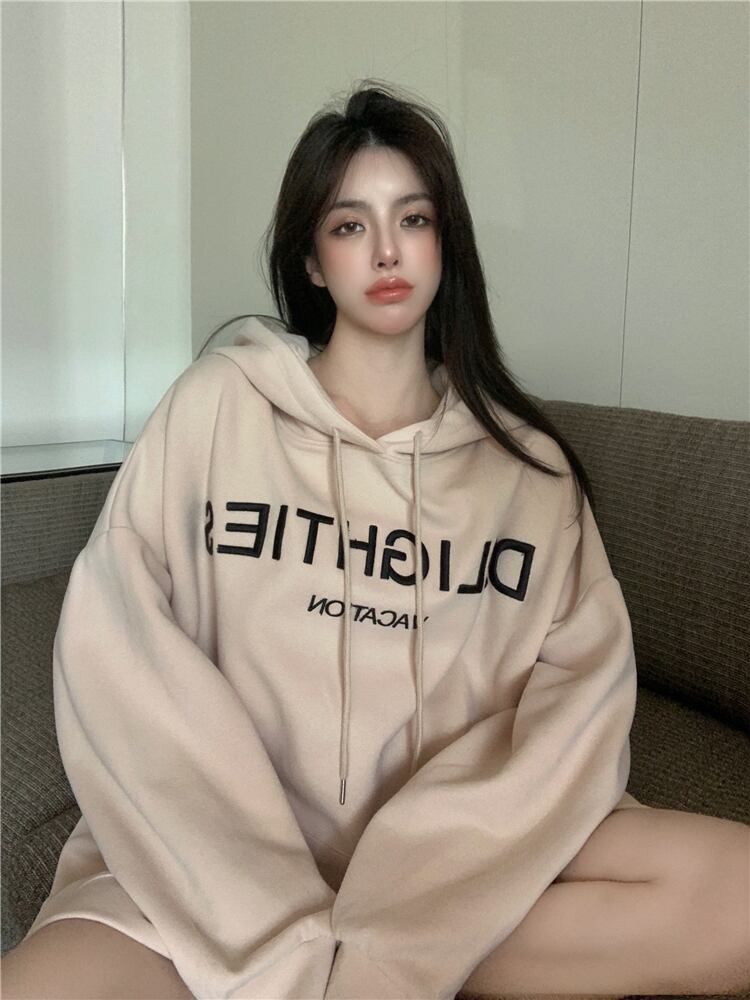 セーター オータムウィンタースタイルルーズフードプリントトップス 秋物 冬物 1号婦人22107811317