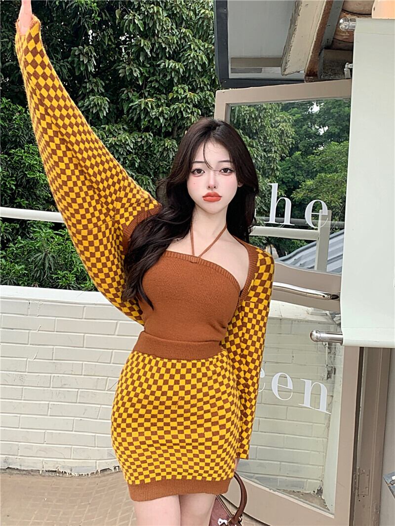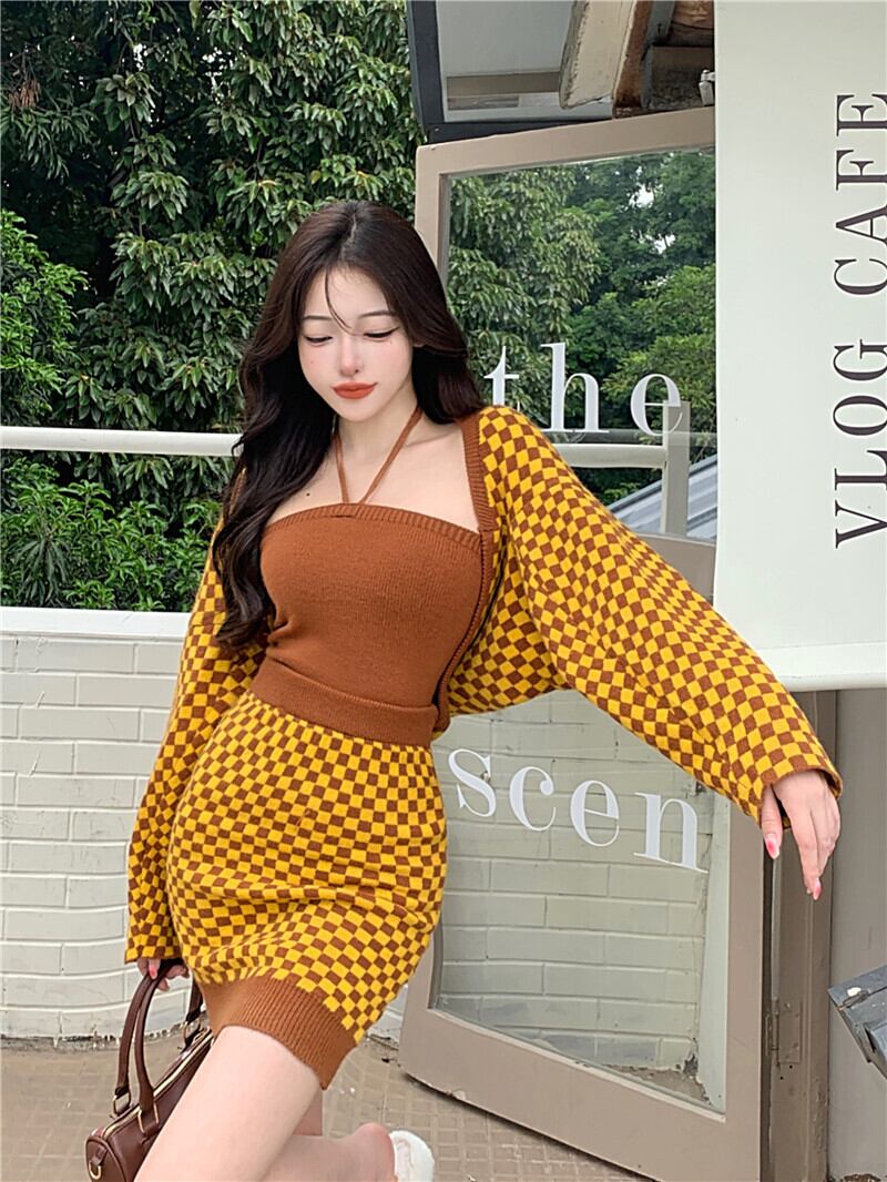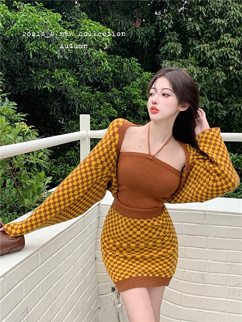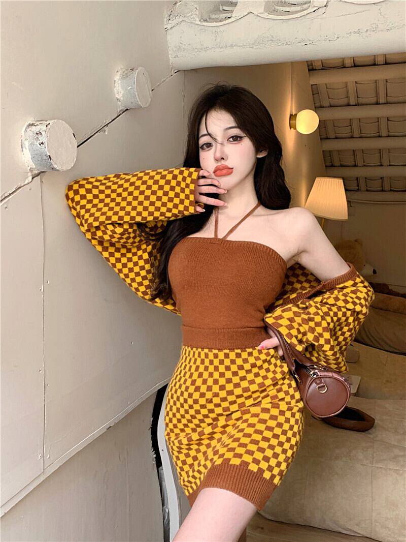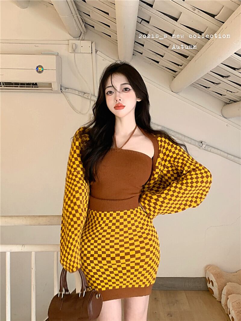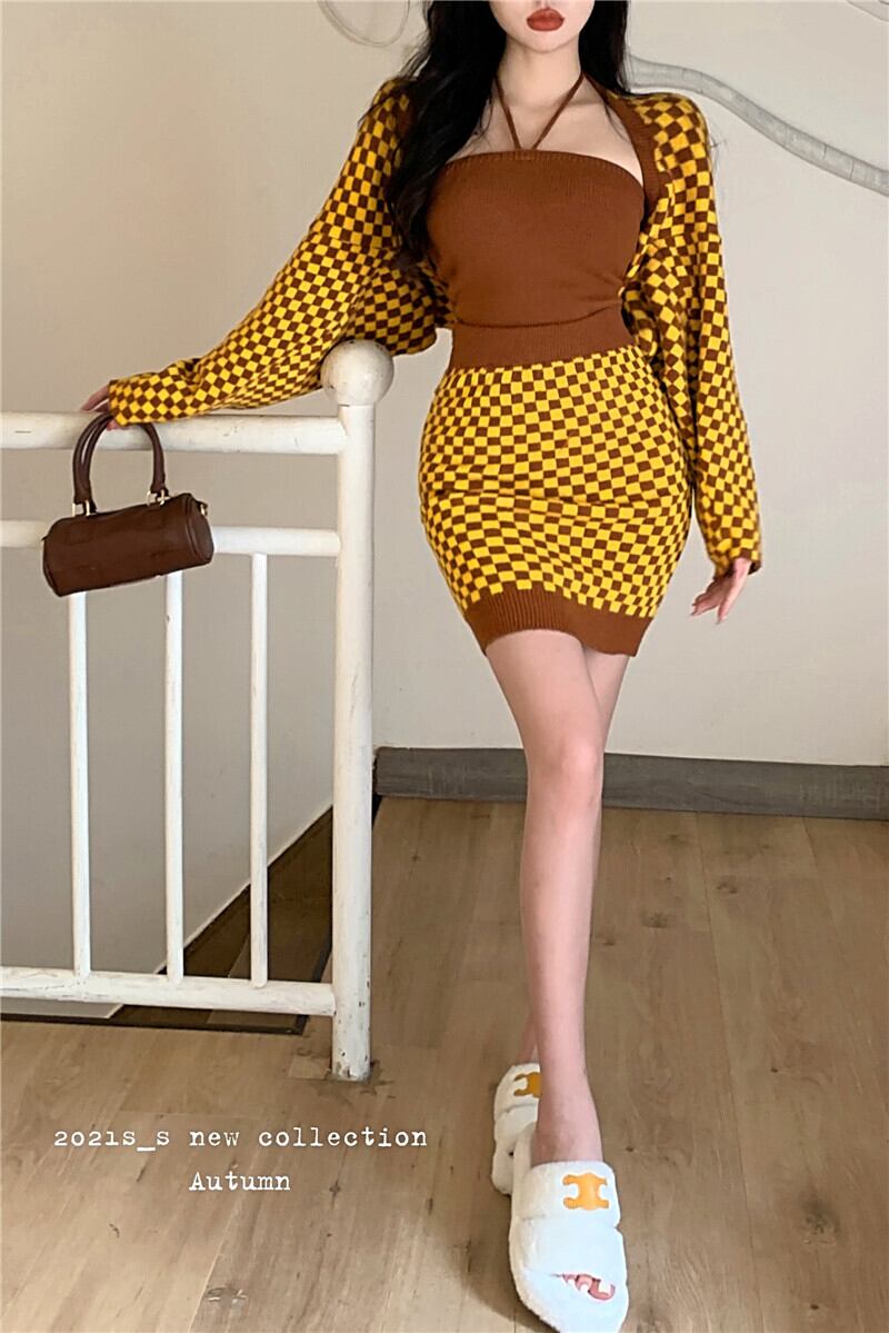 色:スリーピースの黄色いチェッカーボード