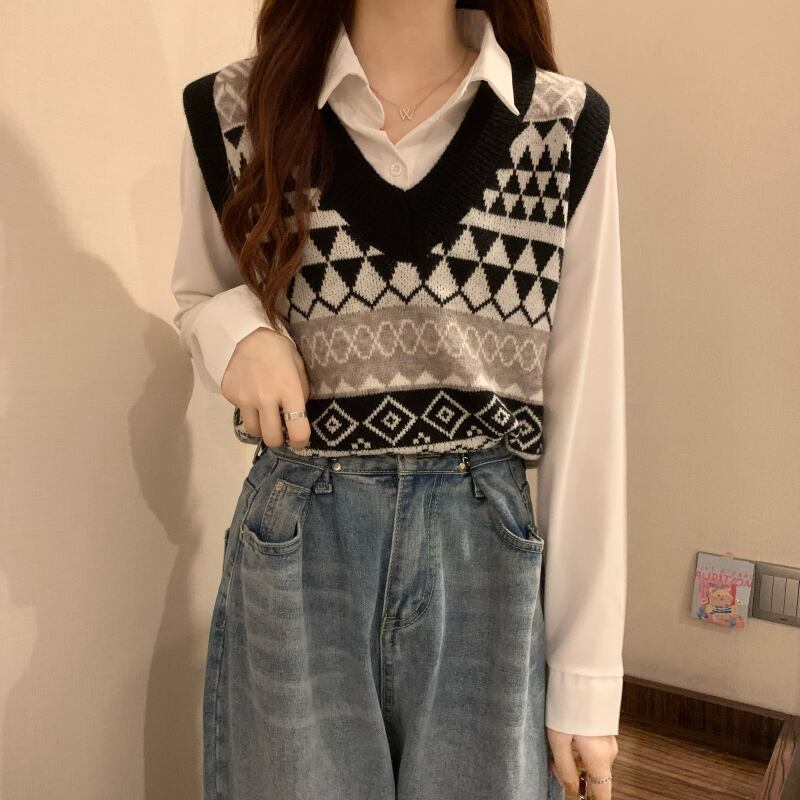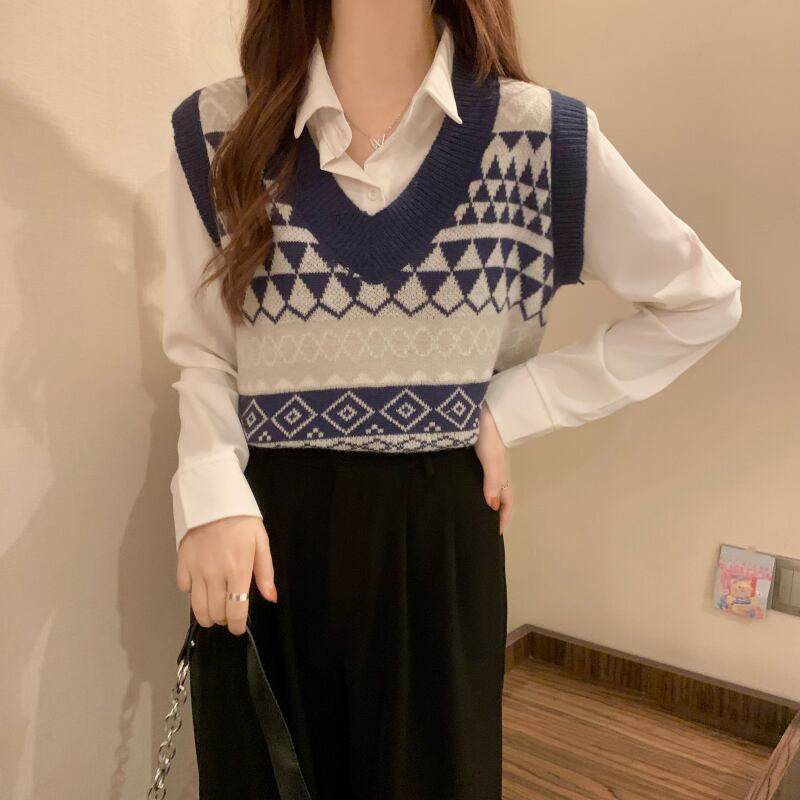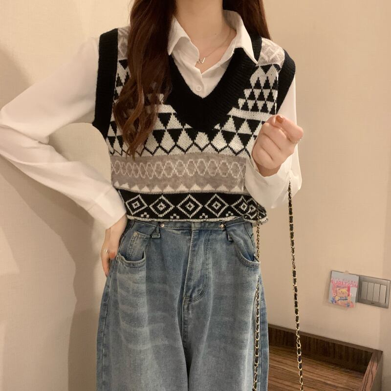 色:黒のベスト,青いベスト,コーヒーベスト,白いシャツベース,ブラックニットボトミング