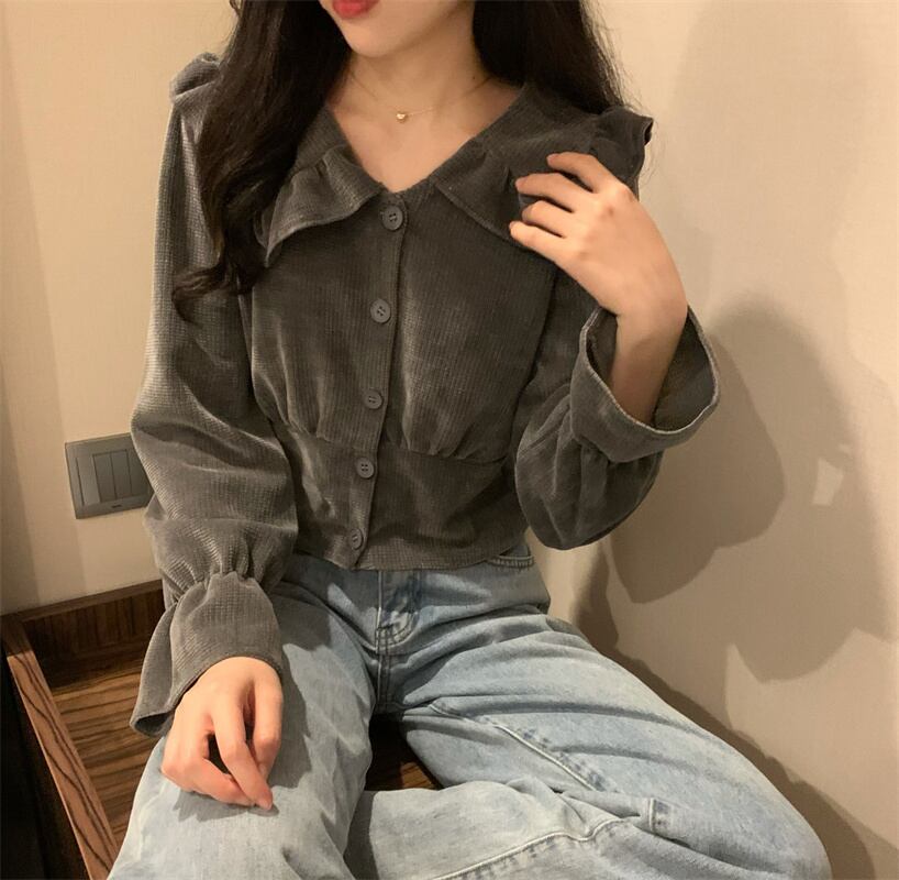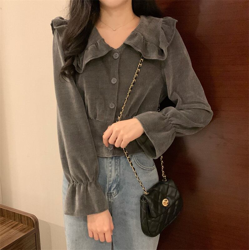 シャツ オータムウィンタートップス カラーコーデュロイショート ロング 秋物 冬物 1号婦人79522079544