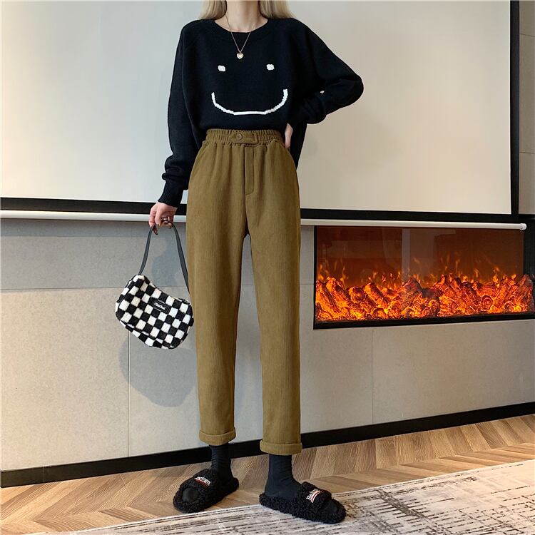 パンツ スタイルベルベットコーデュロイハイウェストウェスト ウィンター 冬物 1号婦人46736822699