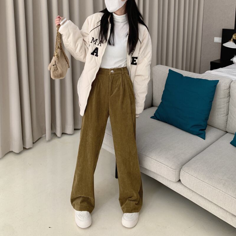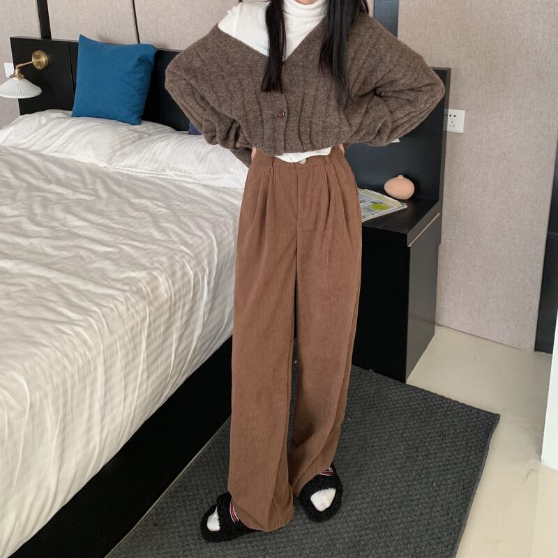 パンツ オータムウィンタースタイルスタンダードコーデュロイハイウェストウェストルーズワイドレッグ レトロ 秋物 冬物 ワイドパンツ 1号婦人63876807956