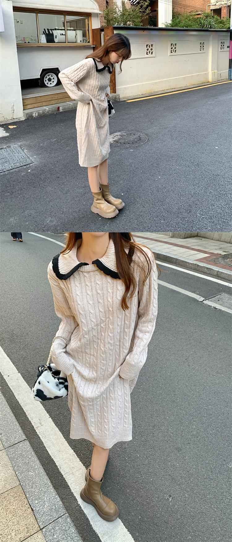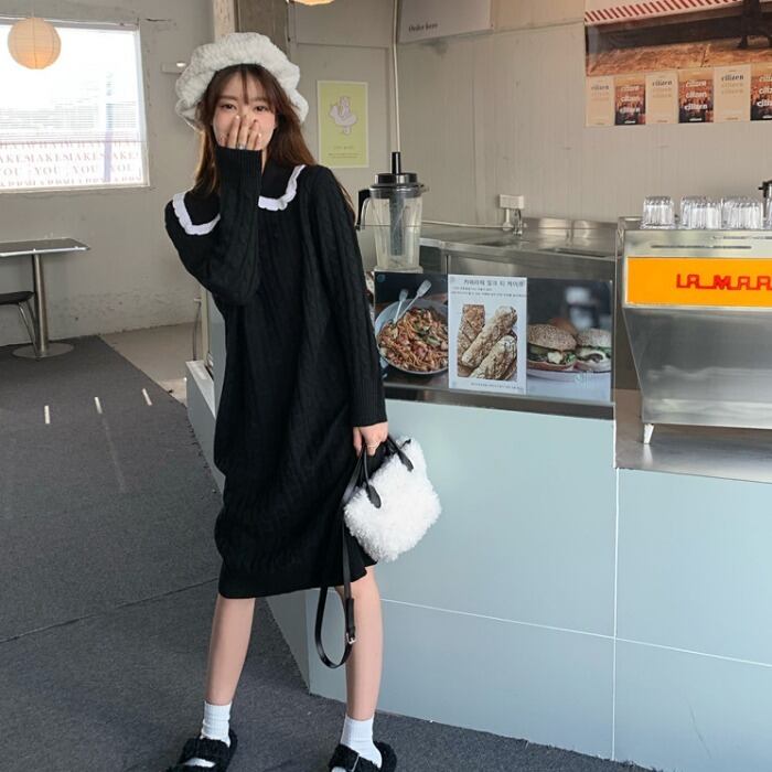 オータムウィンターカラーニットセーター スカート 秋物 冬物 ドレス 1号婦人73907601033