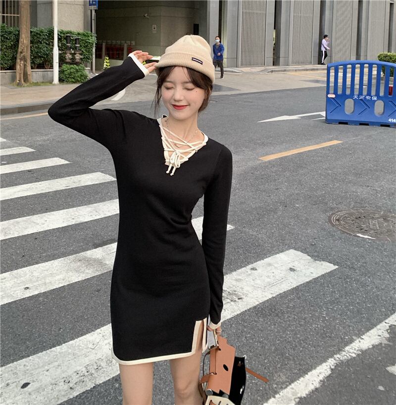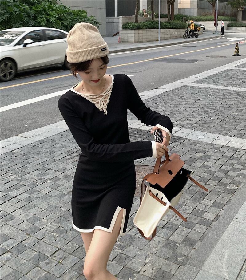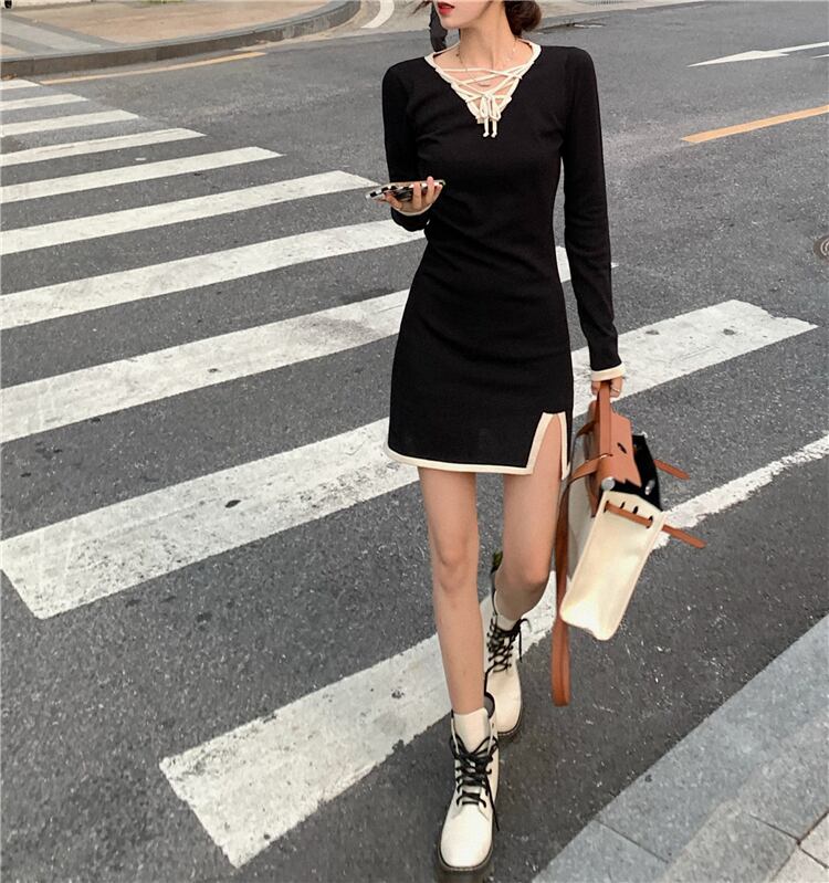 ドレス オータムウィンタースタイルVネックスリムニットスカート 秋物 冬物 1号婦人52720885338