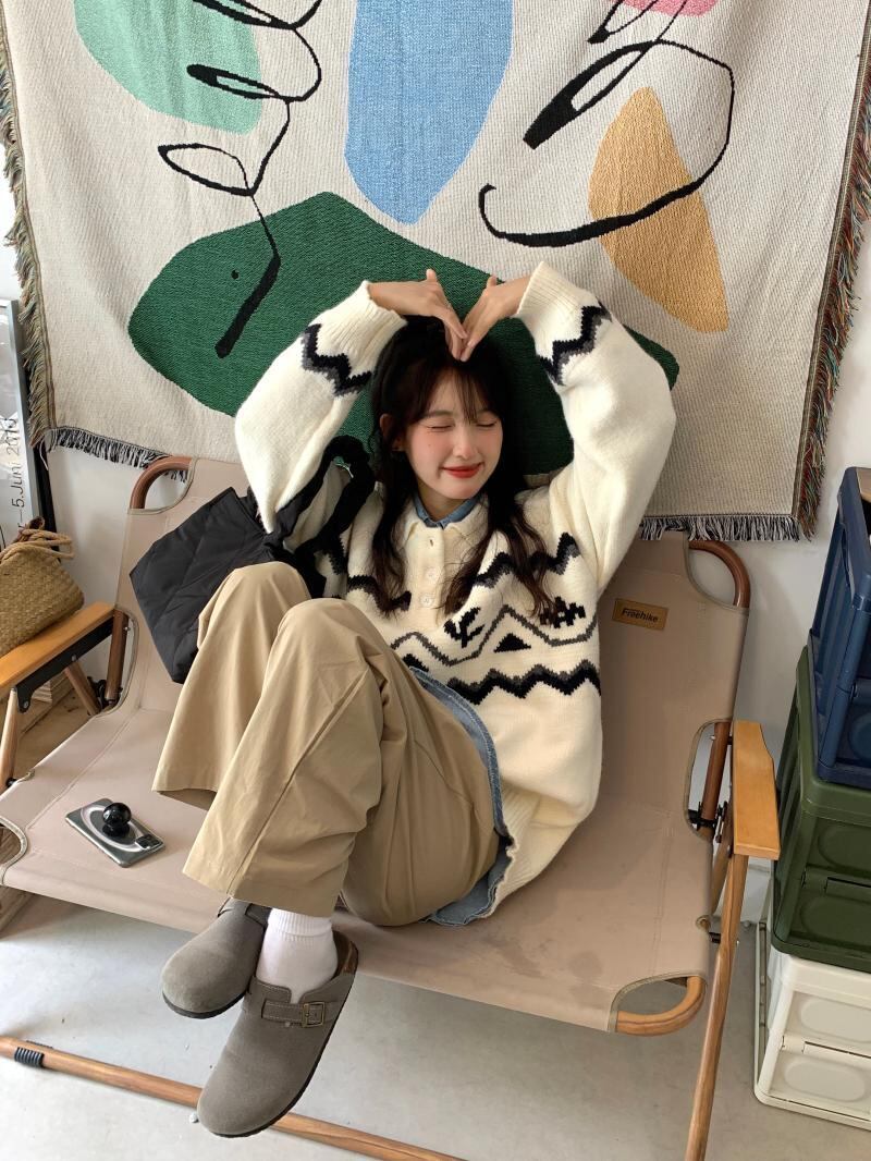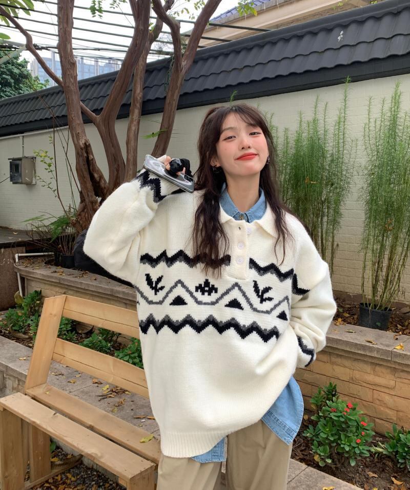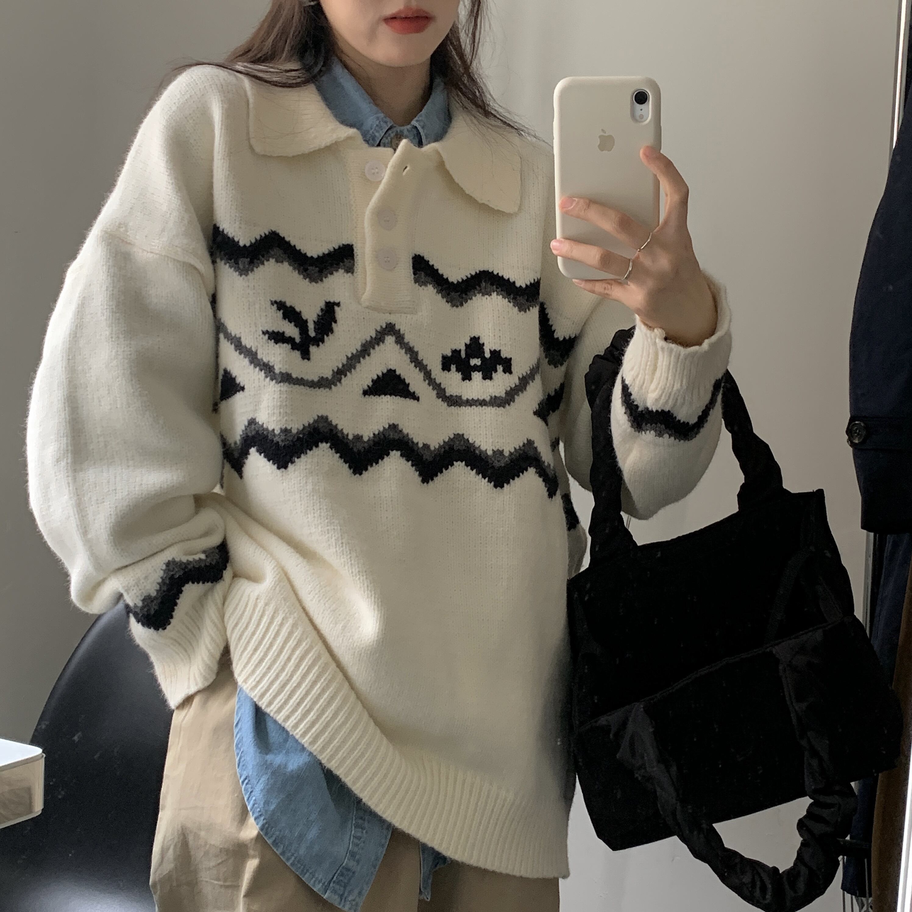 セーター オータムウィンタースタイルスタンダードブラウス ロング レトロ 秋物 冬物 1号婦人25093682064