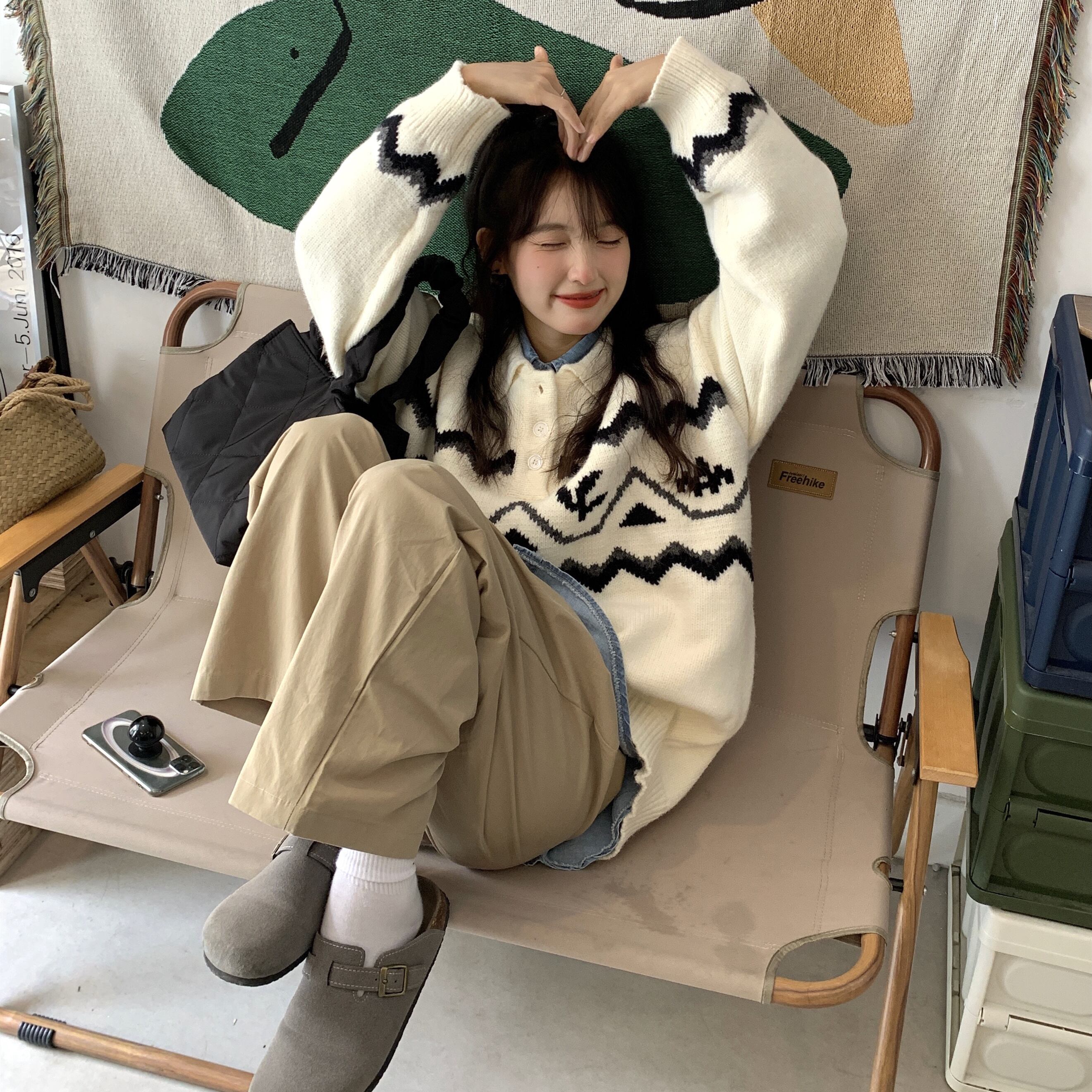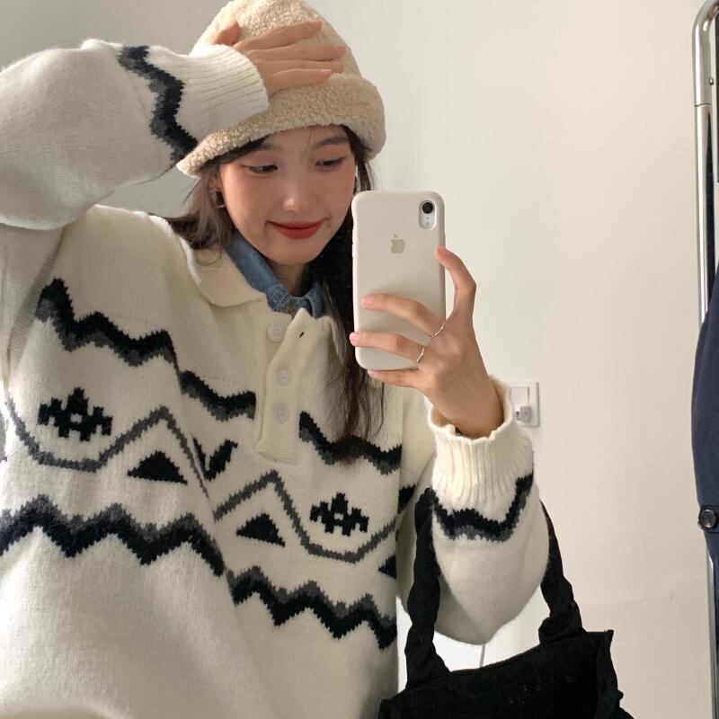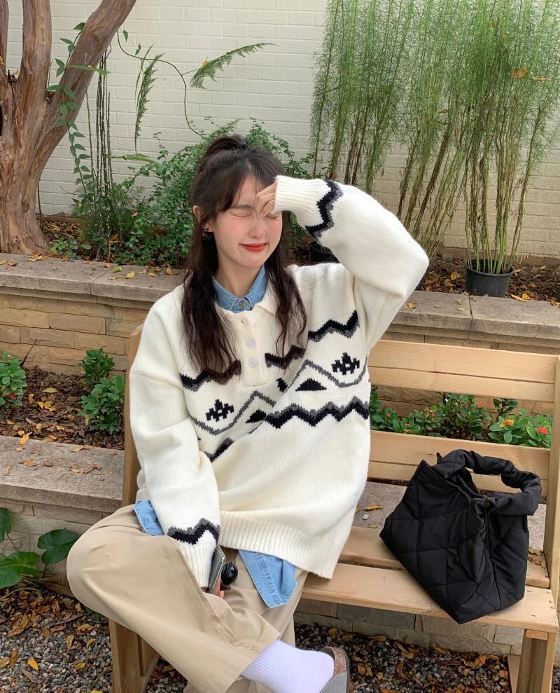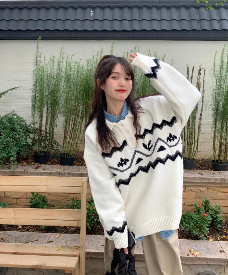 セーター オータムウィンタースタイルスタンダードブラウス ロング レトロ 秋物 冬物 1号婦人25093682064