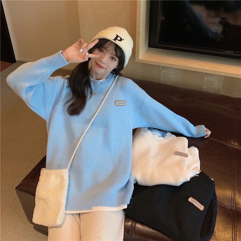 セーター オータムウィンタースタンダードルーズトップス ロング レトロ 秋物 冬物 1号婦人66539608548