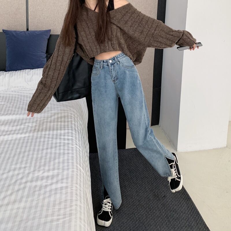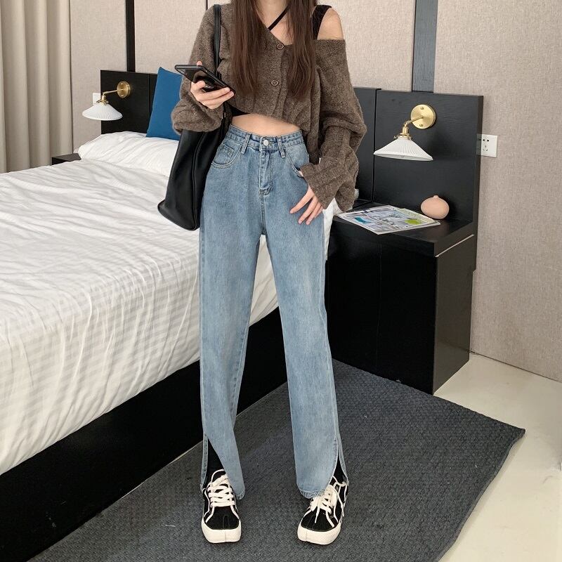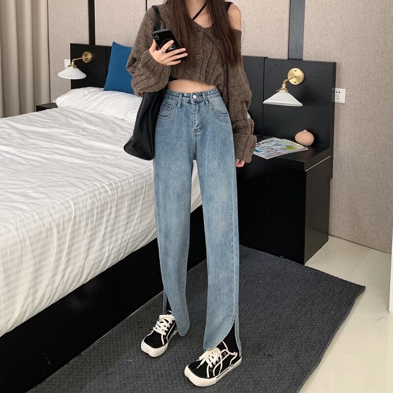 ジーンズ オータムウィンタースタンダードハイウェストウェストルーズ薄手 レトロ 秋物 冬物 1号婦人98351691040