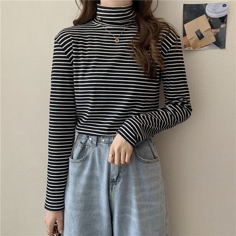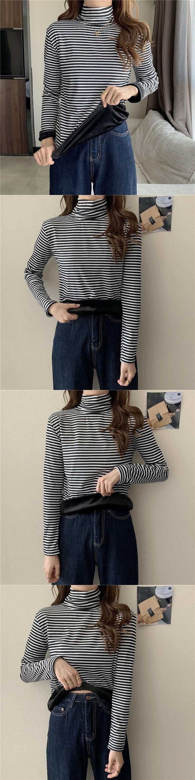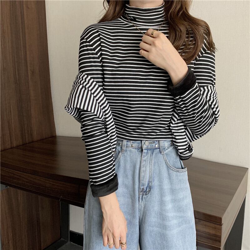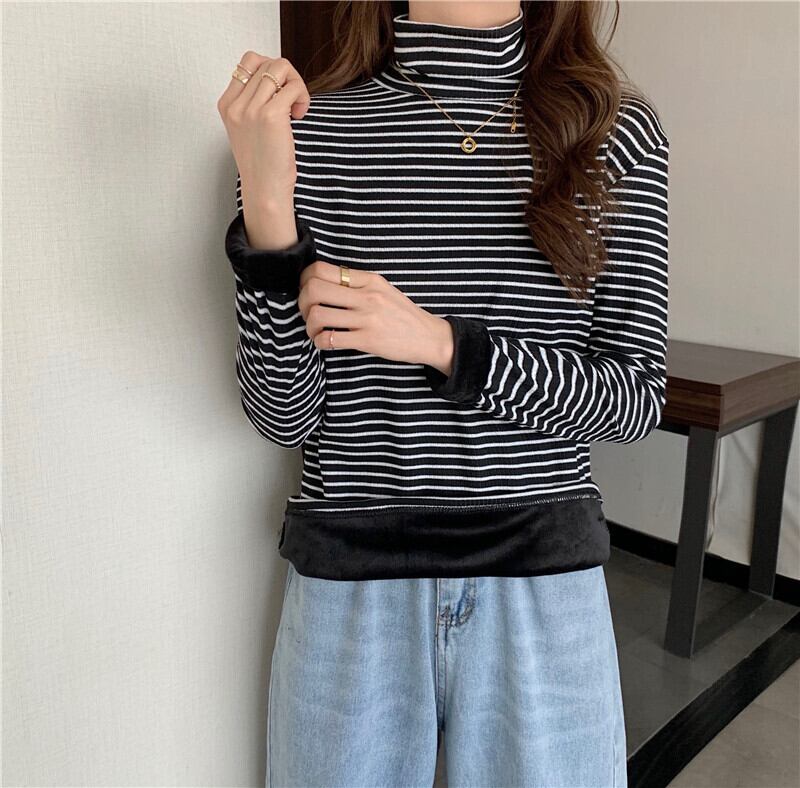 Tシャツ シャツ オータムウィンタースタイルストライプカラーベルベットトップス 秋物 冬物 1号婦人96310359185