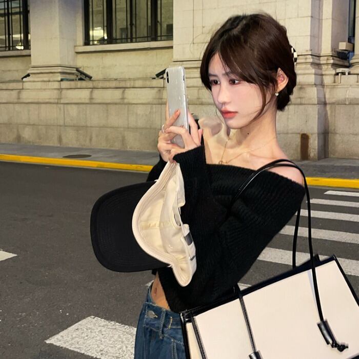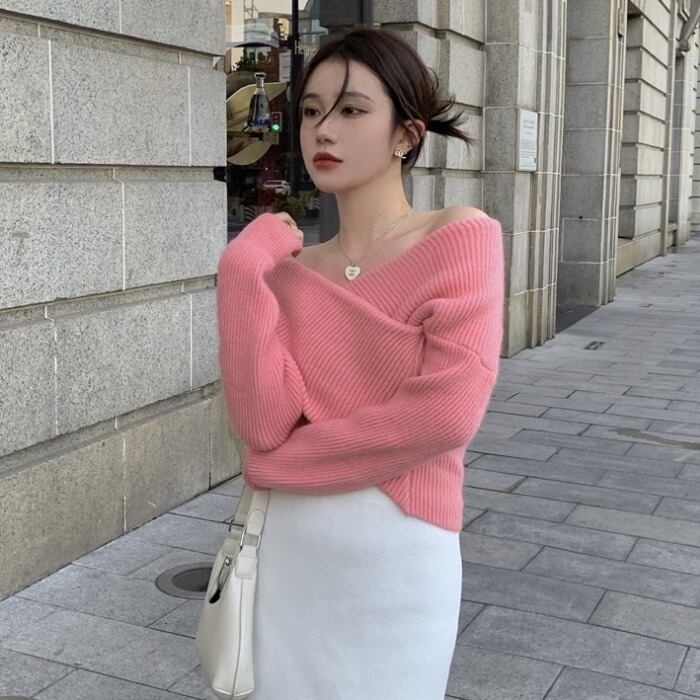 セーター ルーズホワイトショートトップス ロング オータム 秋物 ウィンター 冬物 1号婦人35251252458