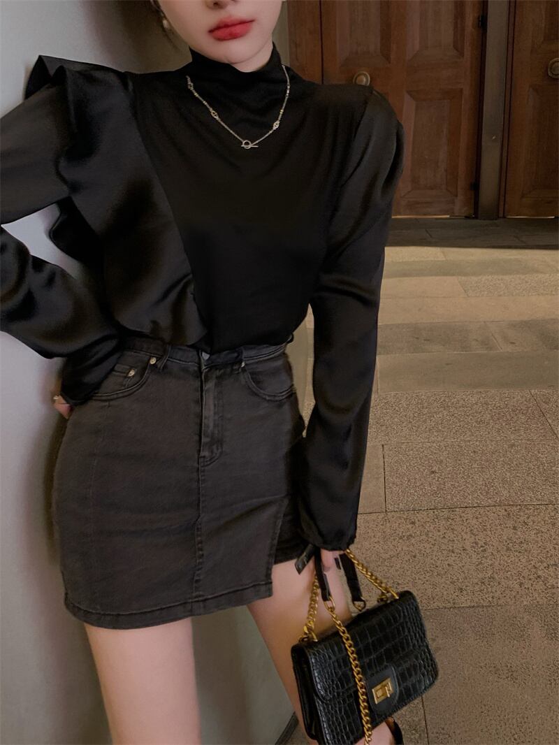 シャツ オータムウィンタートップス スタイルラッフルカラー 秋物 冬物 ステッチ 1号婦人92318006710