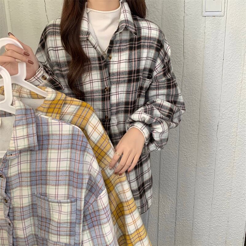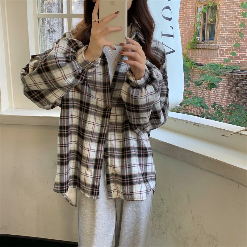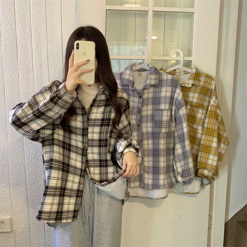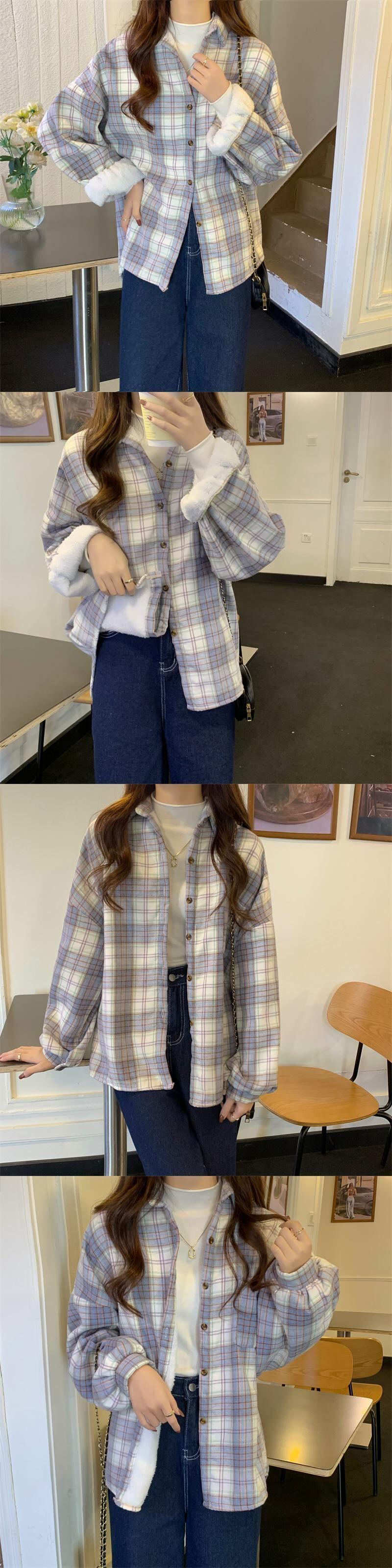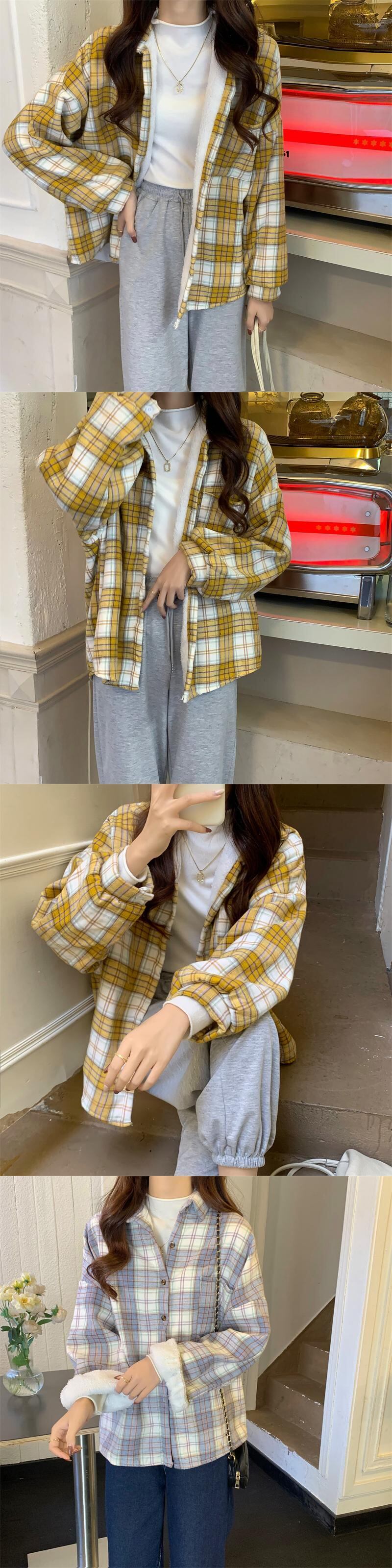 シャツ オータムウィンタートップス スタンダード格子柄ベルベットジャケット ロング レトロ 秋物 冬物 1号婦人59397267518