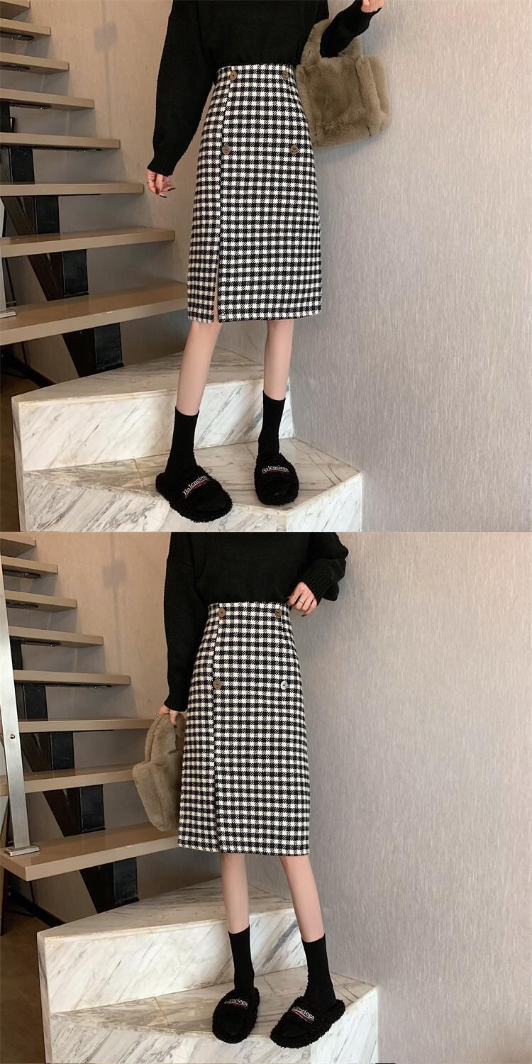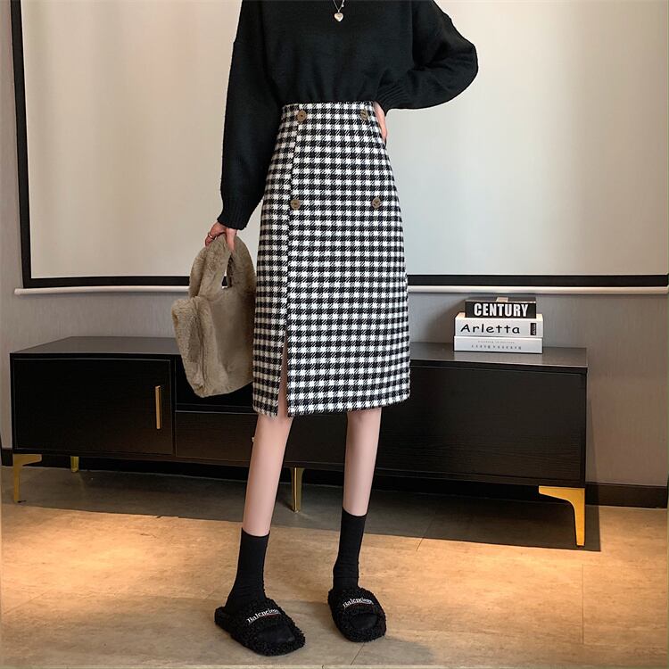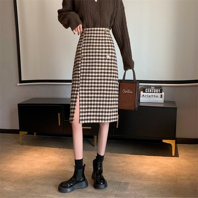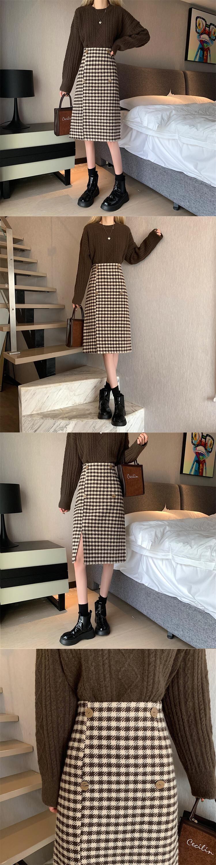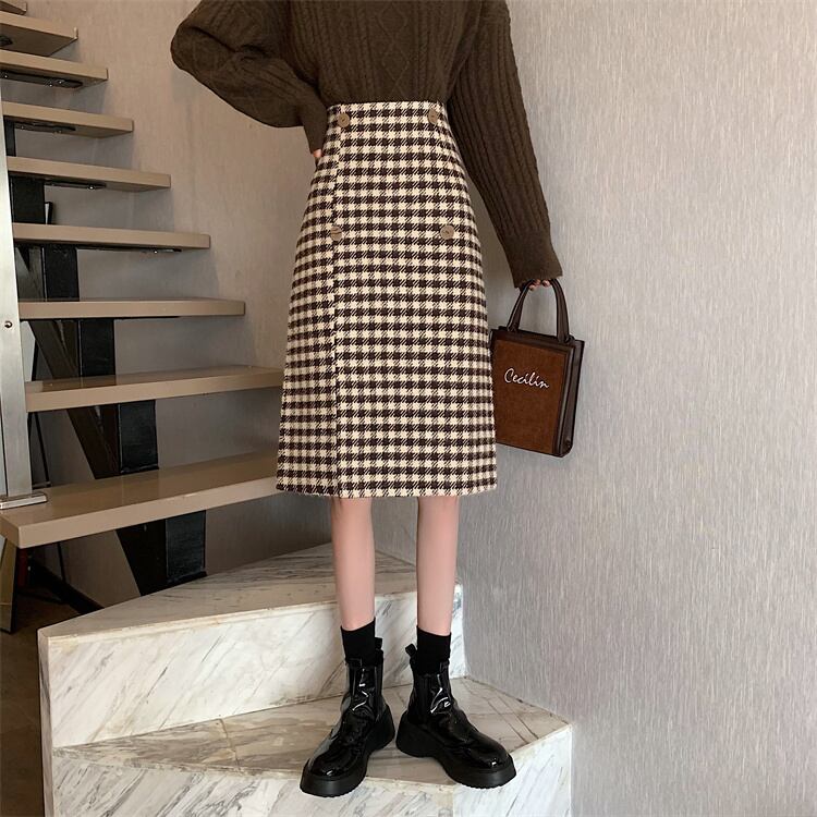 Aラインスカート オータムウィンターハイウェストウェスト格子柄 秋物 冬物 1号婦人16523924931