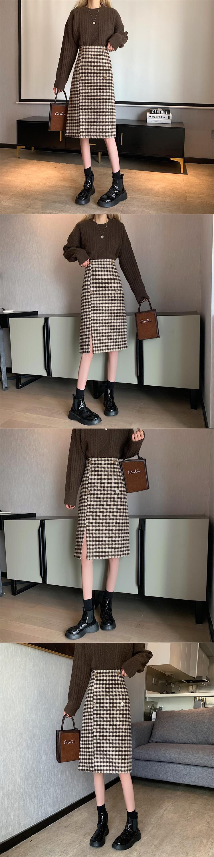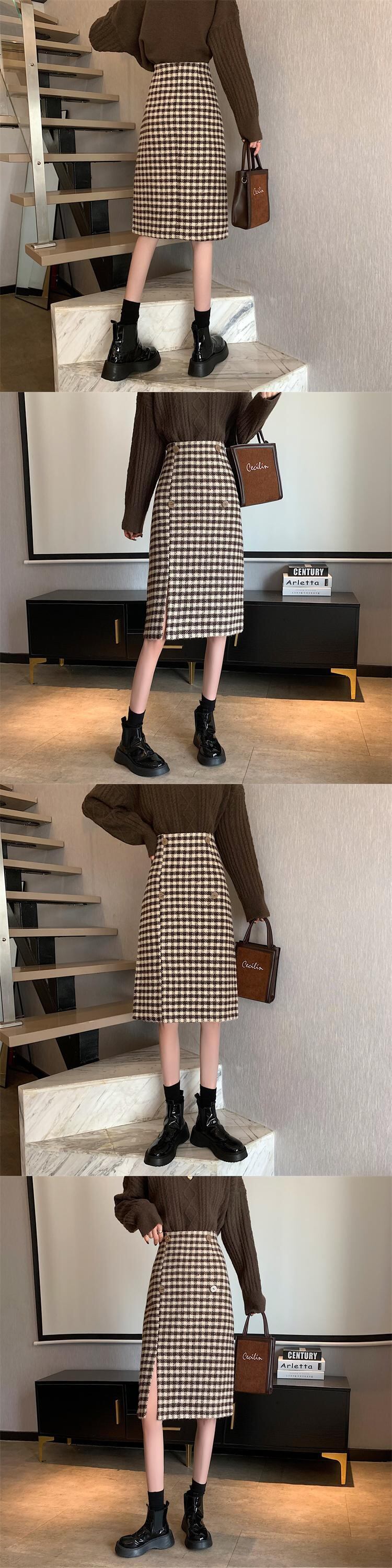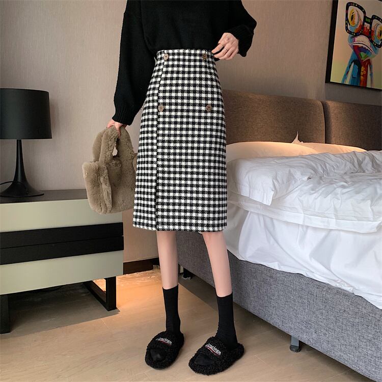 Aラインスカート オータムウィンターハイウェストウェスト格子柄 秋物 冬物 1号婦人16523924931