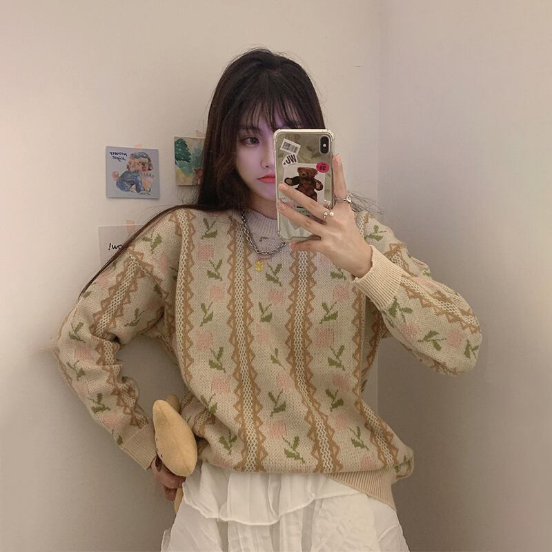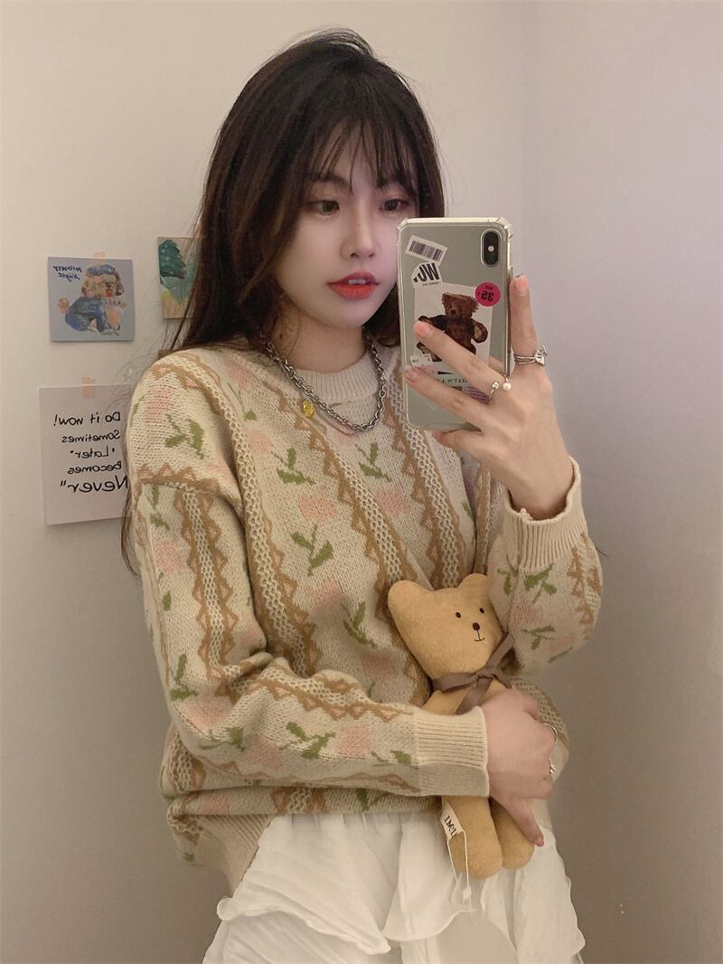 セーター オータムウィンタースタンダードスタイルFlowerデザイン プルオーバー トップス レトロ 秋物 冬物 フラワーデザイン 1号婦人43112550158