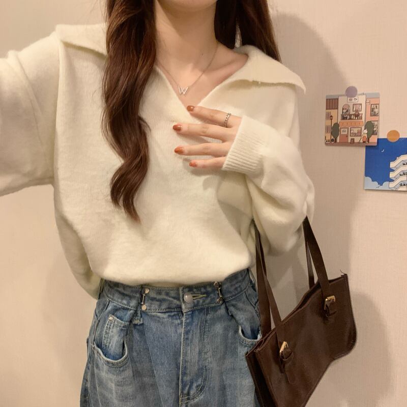 セーター オータムウィンタースタンダードスタイルショートトップス ロング レトロ 秋物 冬物 1号婦人40078275032