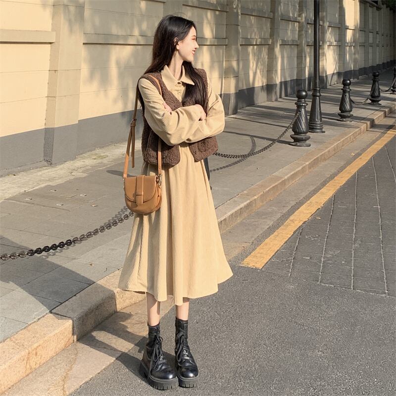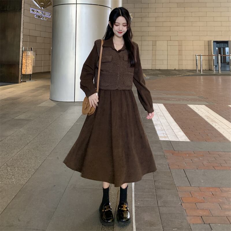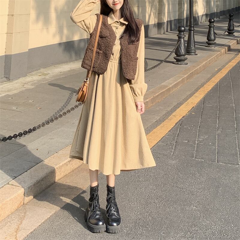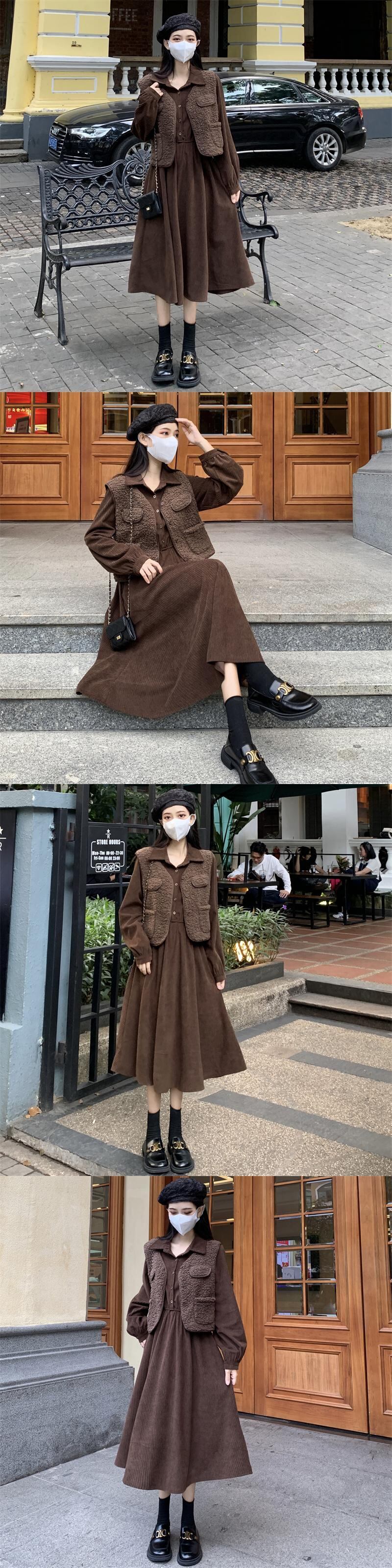 色:ブラウンベスト,カーキ色のドレス,茶色のドレス