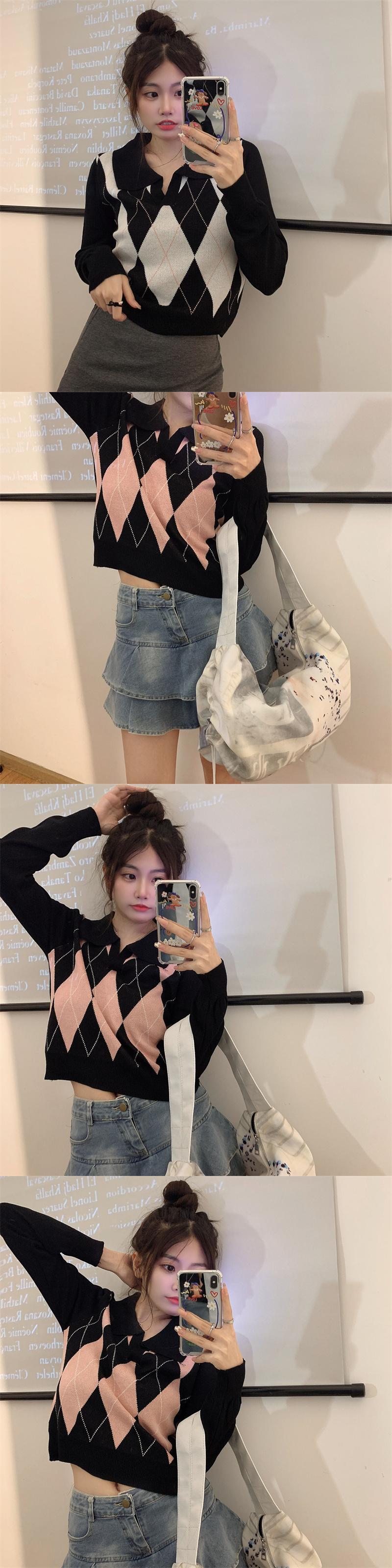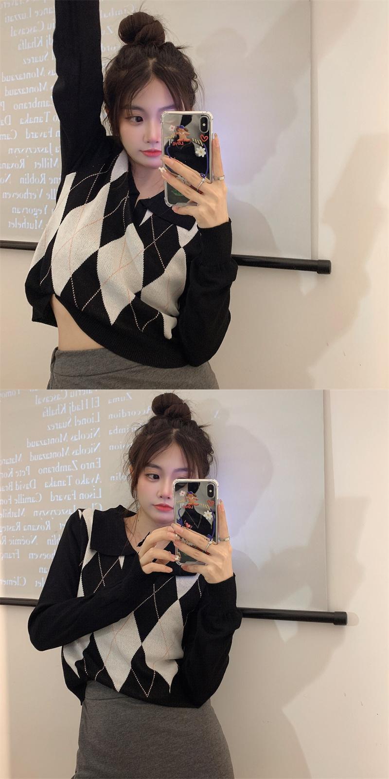 オータムスリム格子柄セーター ウィンターカラーロングジャケット 長袖 秋物 冬物 1号婦人38042724083