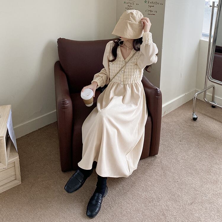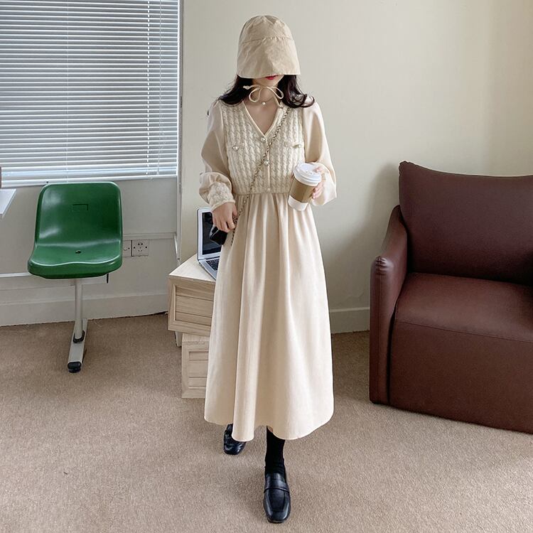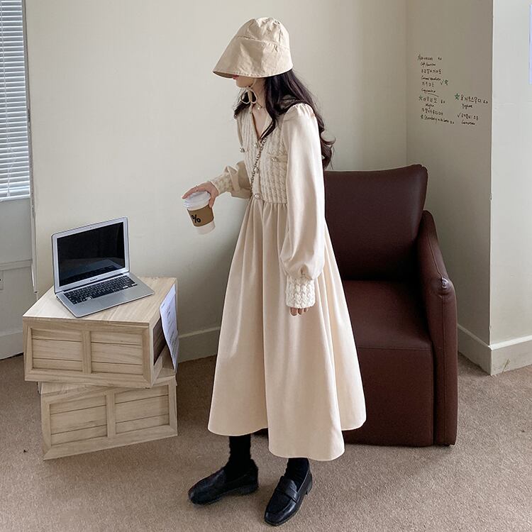 オータムウィンタードレス ワンピース ブラックスカート ロング 秋物 冬物 ステッチ 1号婦人84953823695