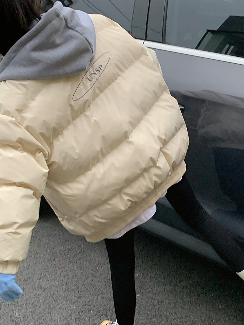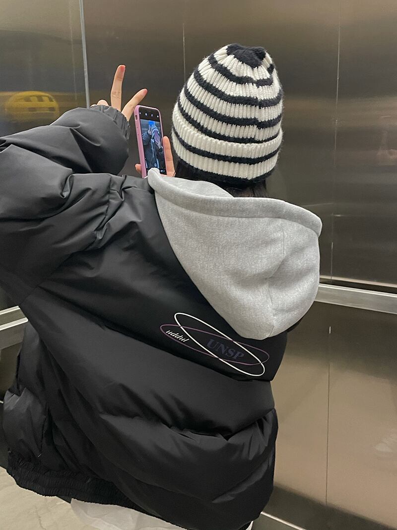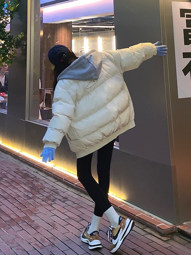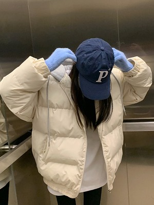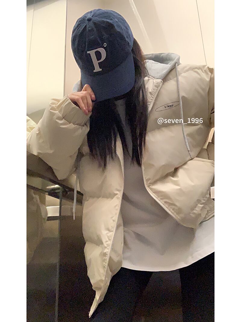色:アプリコットフード付きコットンジャケット,黒のフード付きコットンコート